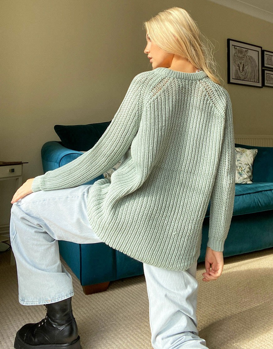 Szałwiowy sweter z grubej dzianiny o warkoczowym splocie XS