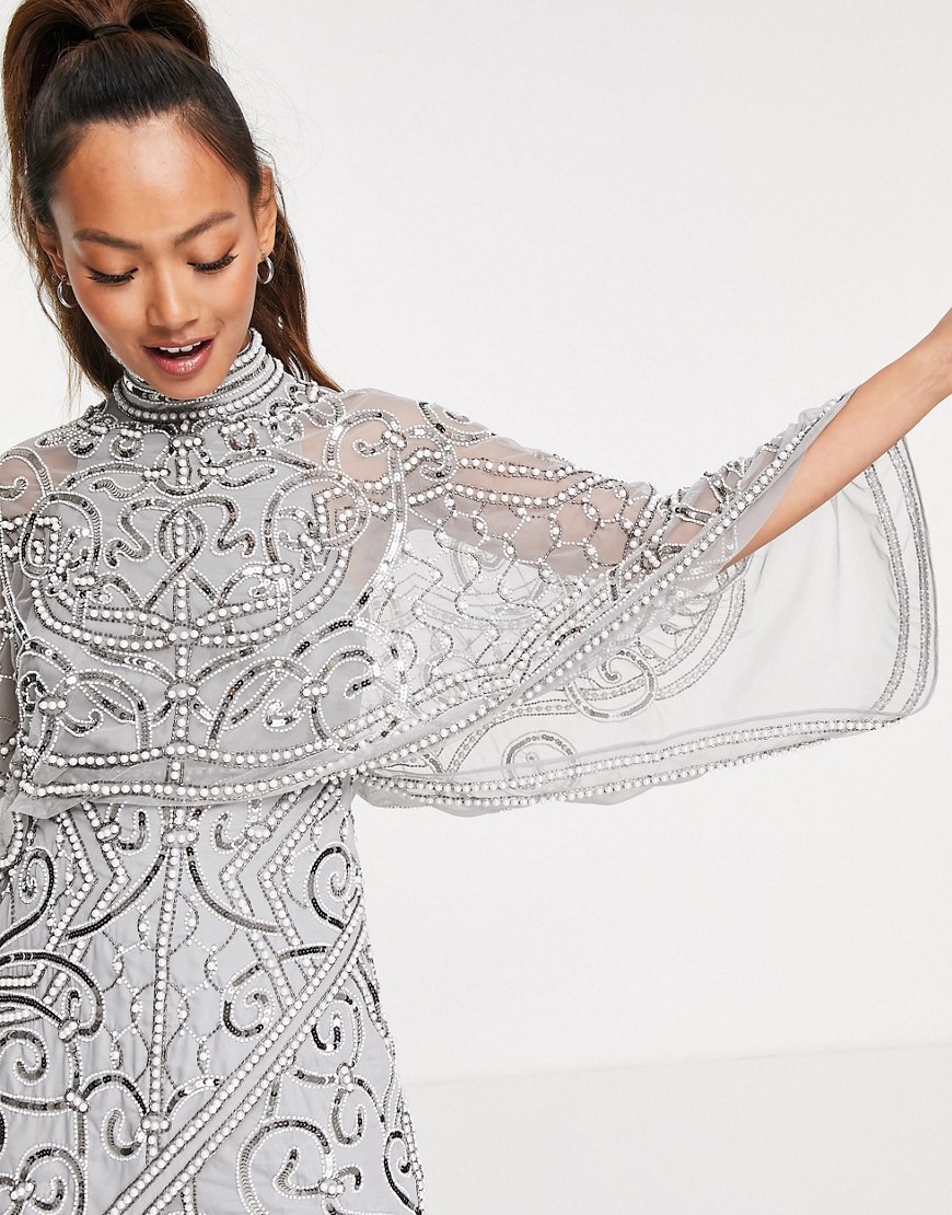 Szara cekinowa sukienka koktajlowa mini z perełkami 40