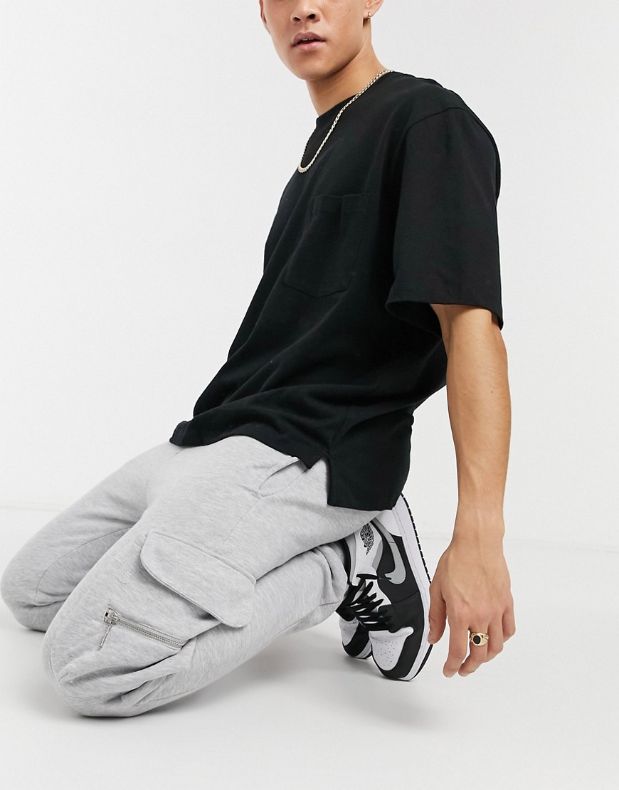 Szare męskie spodnie dresowe joggery bojówki kieszeniami XL