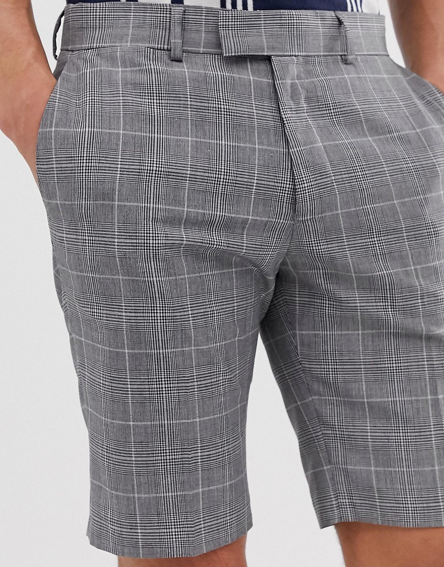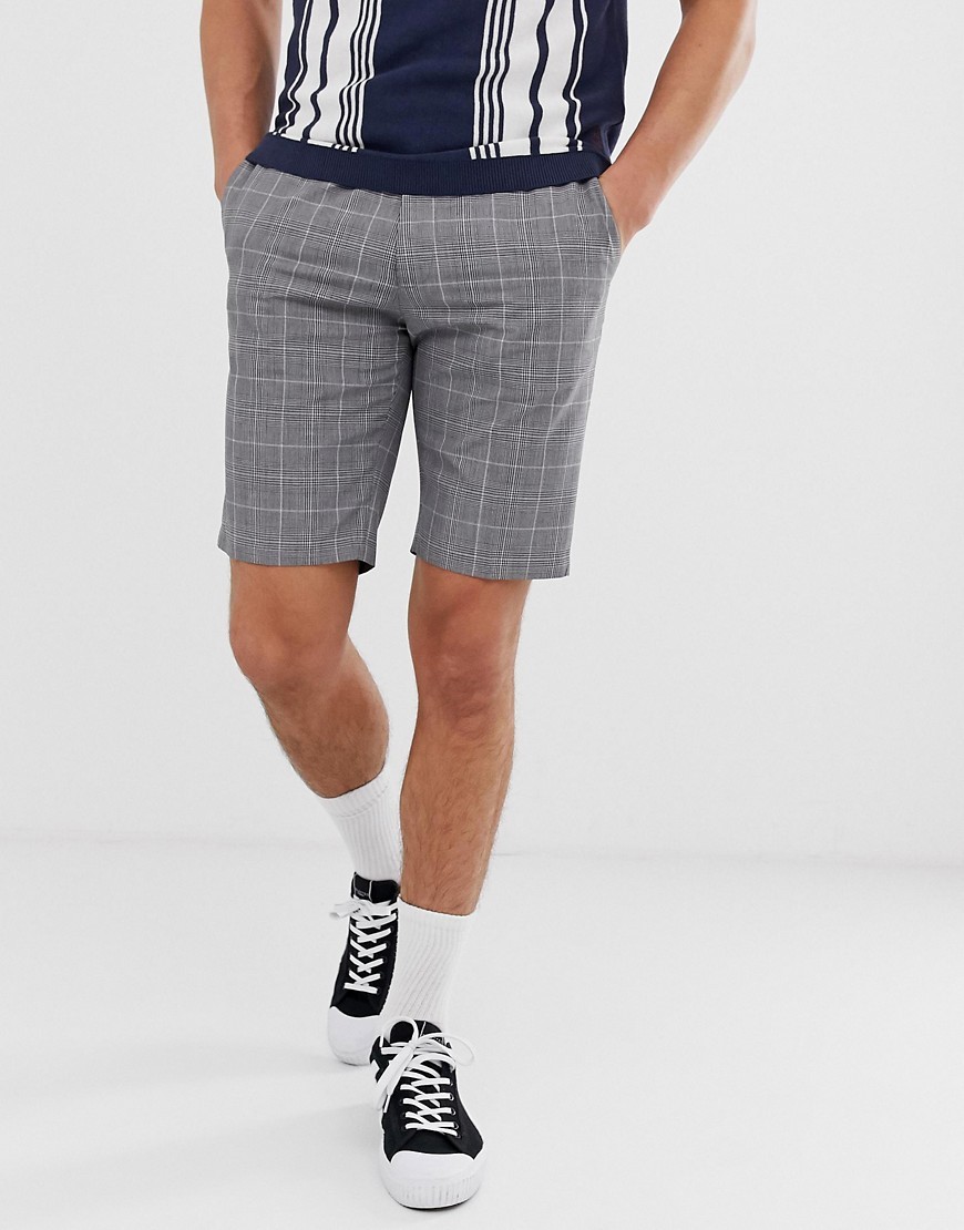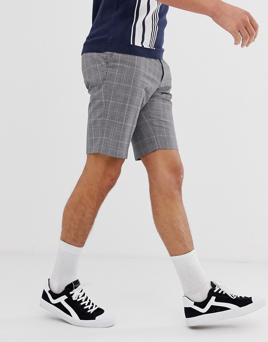 Szare męskie szorty krótkie spodenki w kratkę W32