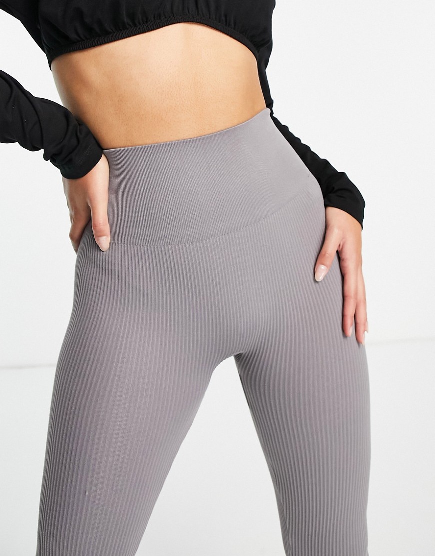 Szare prążkowane legginsy bezszwowe defekt S