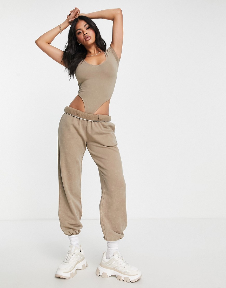 Szarobrązowe body z krótkimi rękawami defekt 38