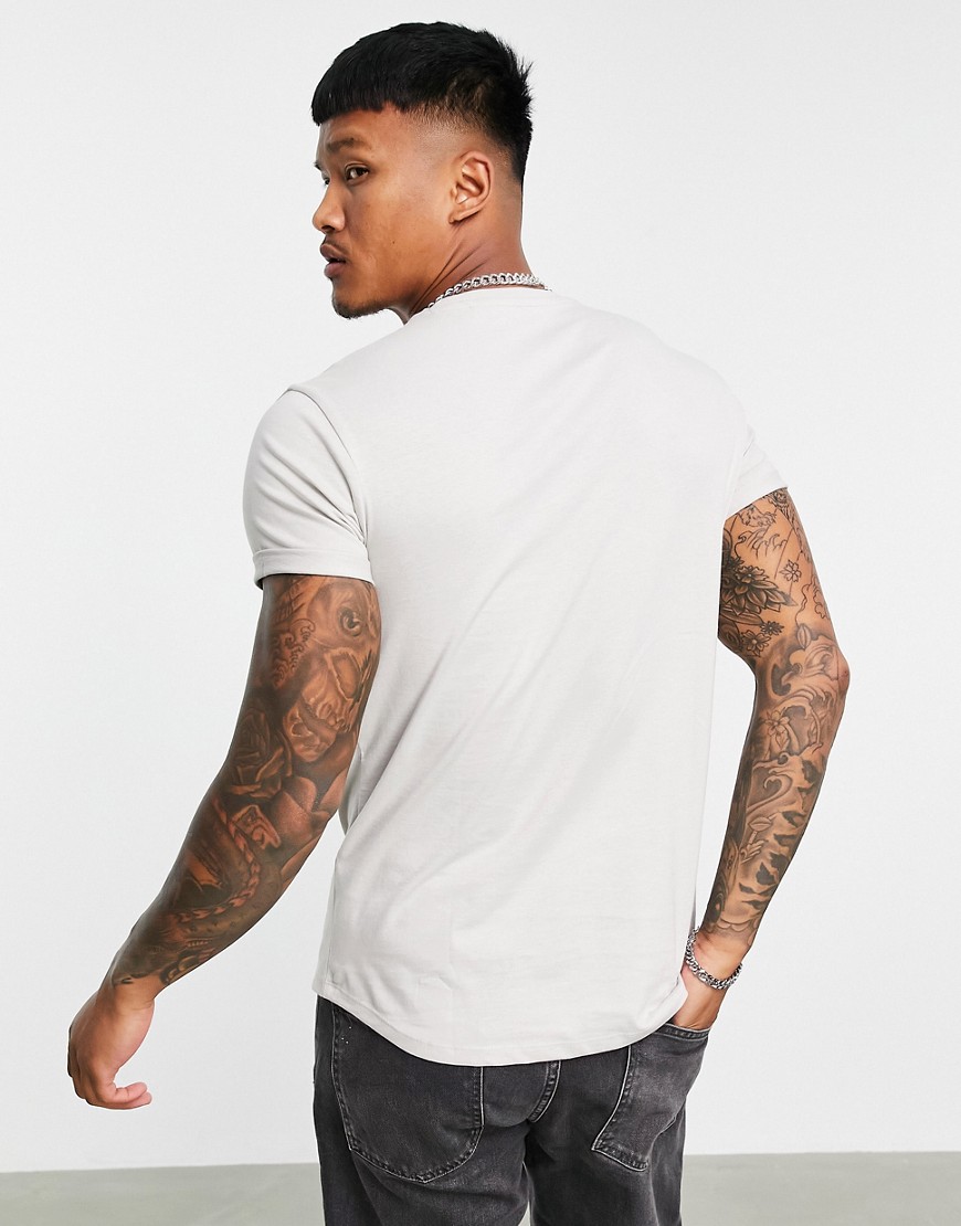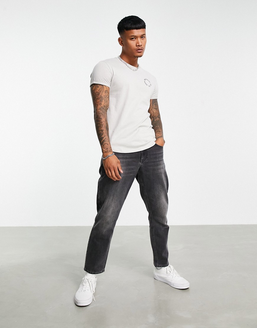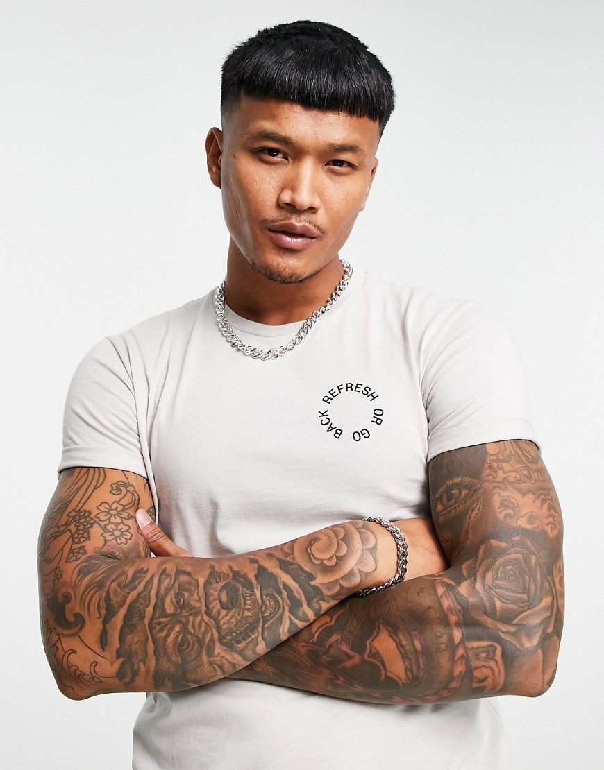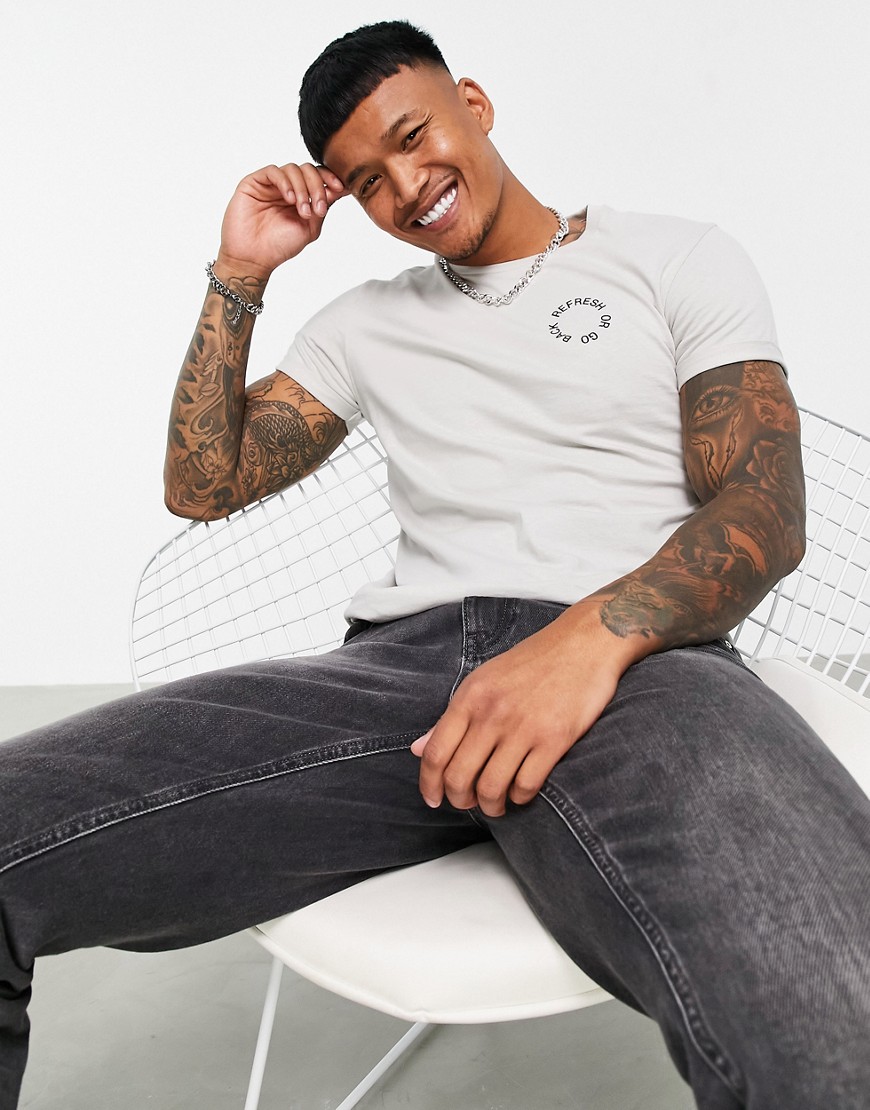 Szary męski t shirt z nadrukiem na piersi L