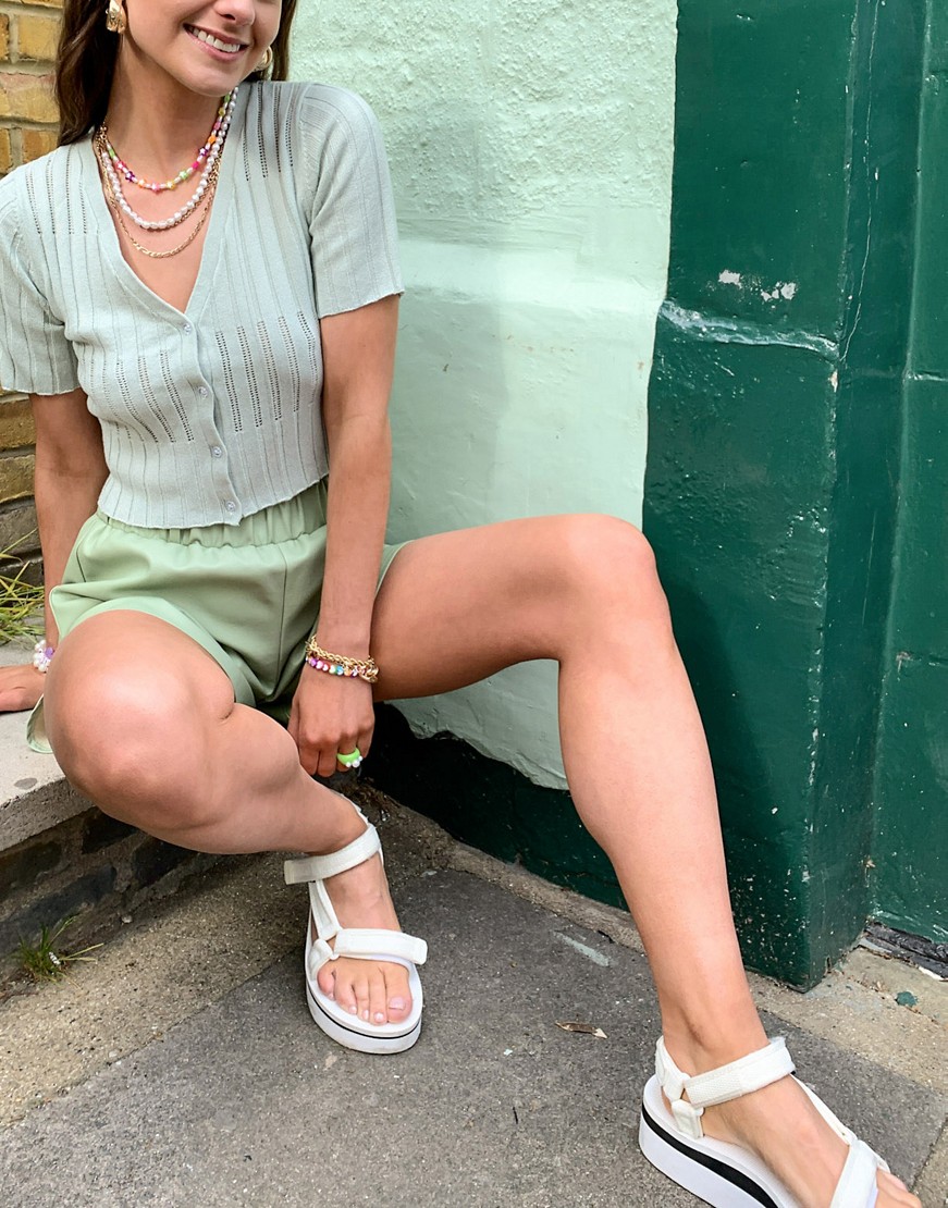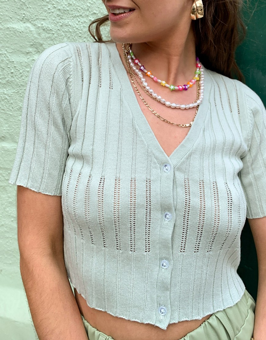 Zielony prążkowany kardigan z krótkim rękawem 38