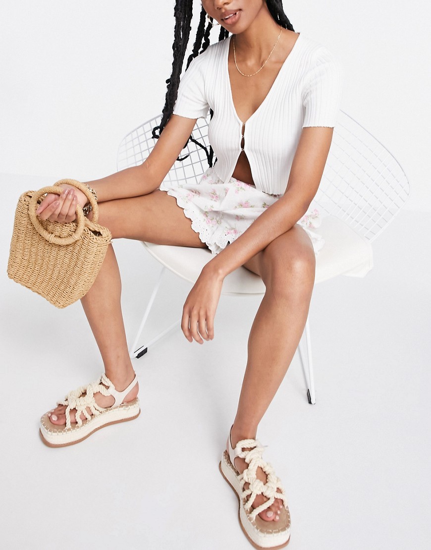 Szorty z koronkowym wykończeniem i wzorem w drobne różowe kwiaty 40