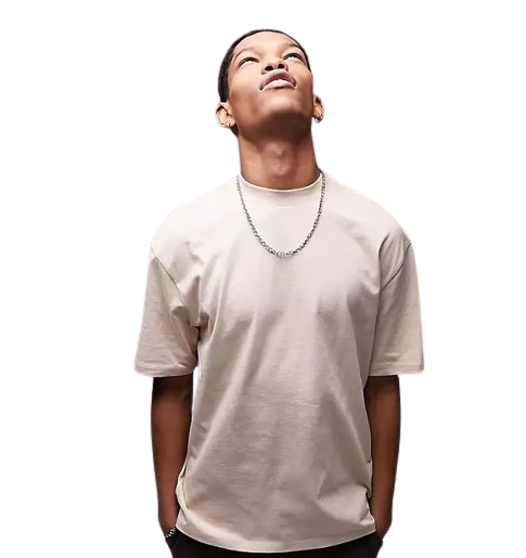 T-shirt bawełniany oversize w kolorze kamiennobeżowym XS