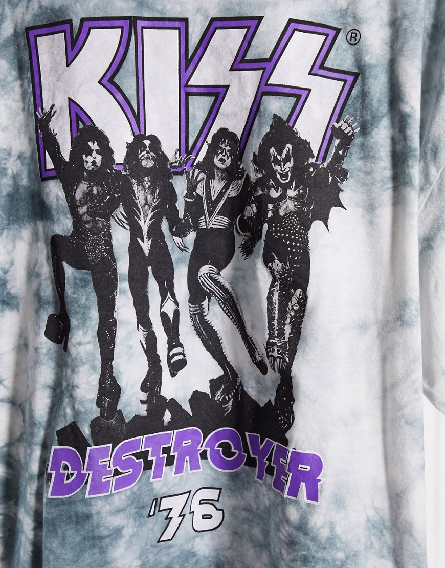 T-shirt o kroju oversize z efektem tie-dye i nadrukiem z zespołem Kiss L