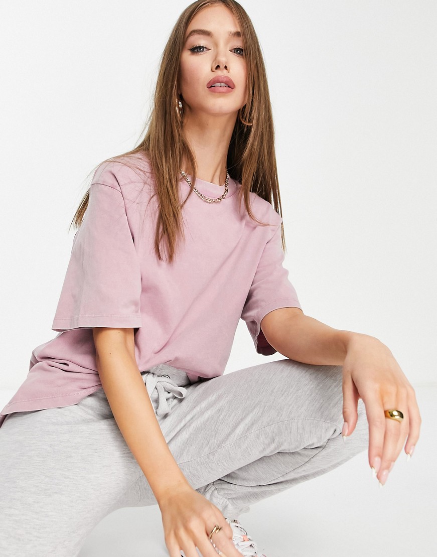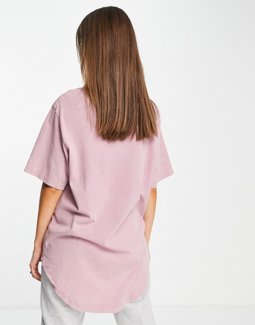 T shirt oversize przedłużony tył efekt sprania róż 34