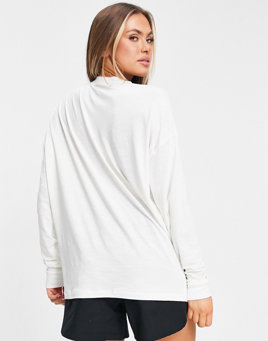 T-shirt treningowy damski z długim rękawem w żakardowy wzór kremowy 44