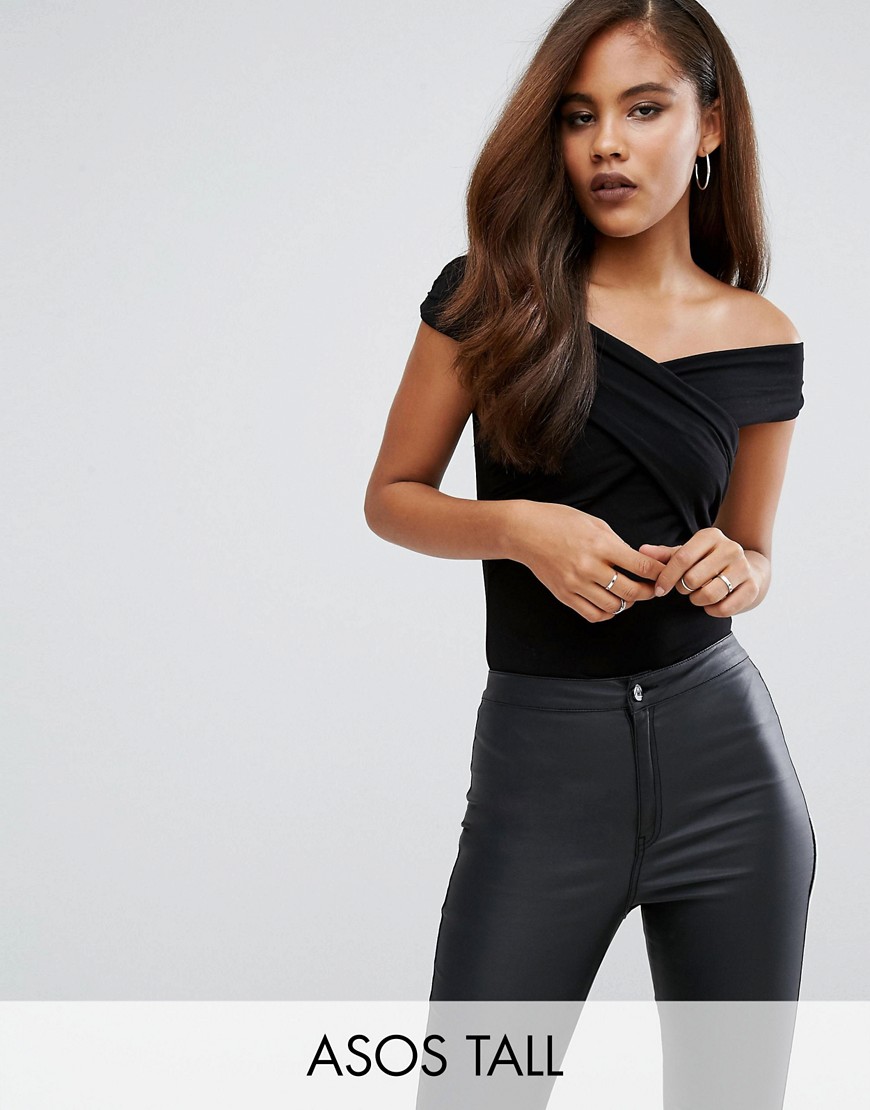 ASOS TALL czarna bluzka body odsłonięte ramiona