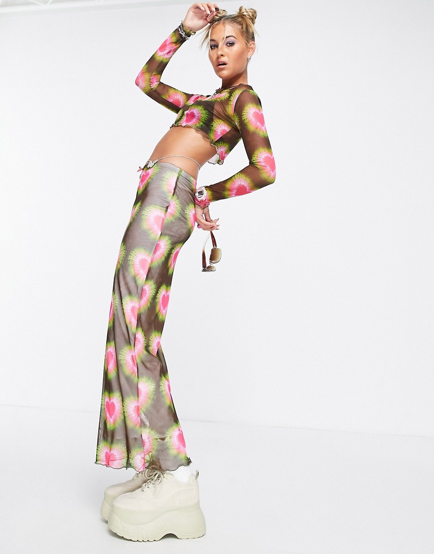 Tammy Girl zielona spódnica maxi z kokarda w talii we wzór w serca 38