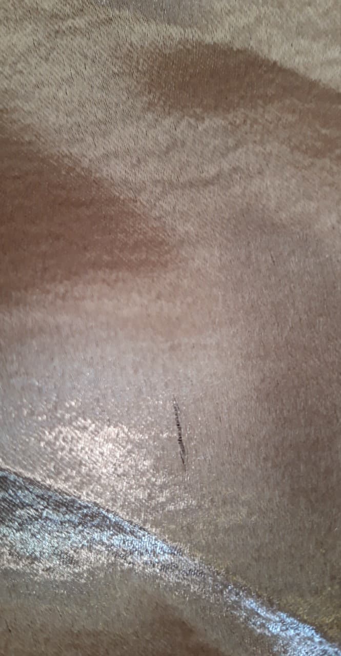 - DEFEKT: Zaciągnięcie wyciągnięta nitka z przodu (zdjęcie)