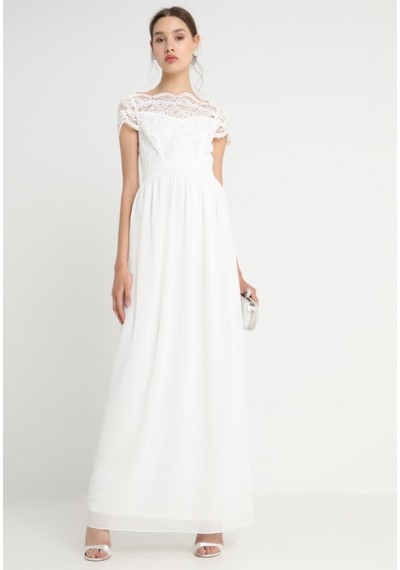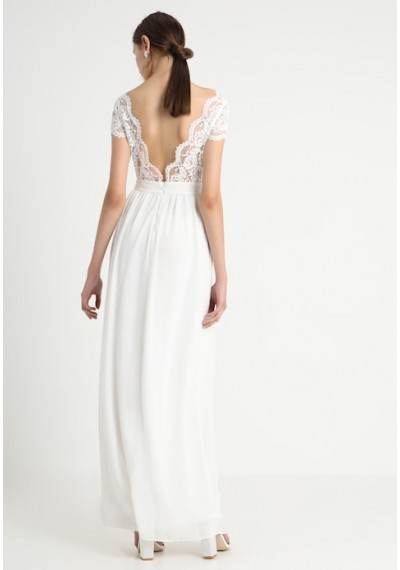 Tfnc biała maxi koronkowa suknia dopasowana w talii z krótkim rękawem defekt 38