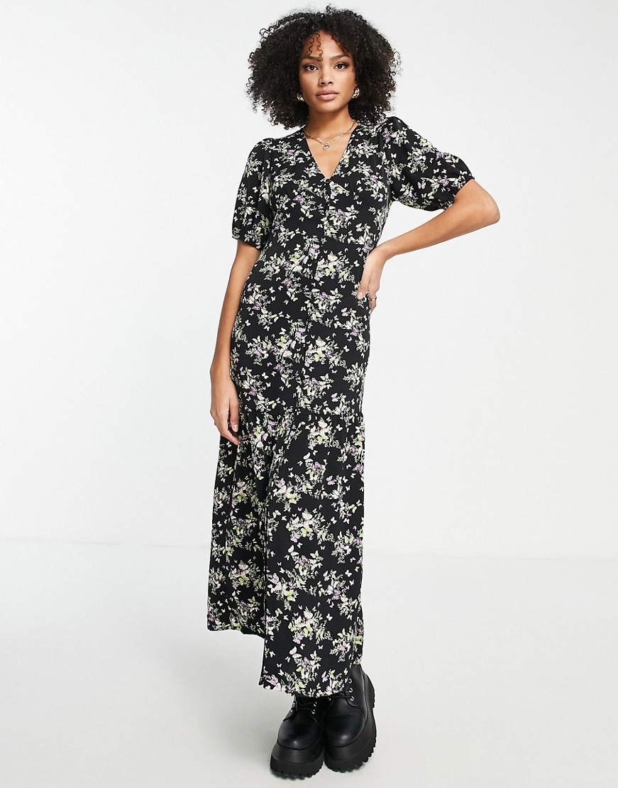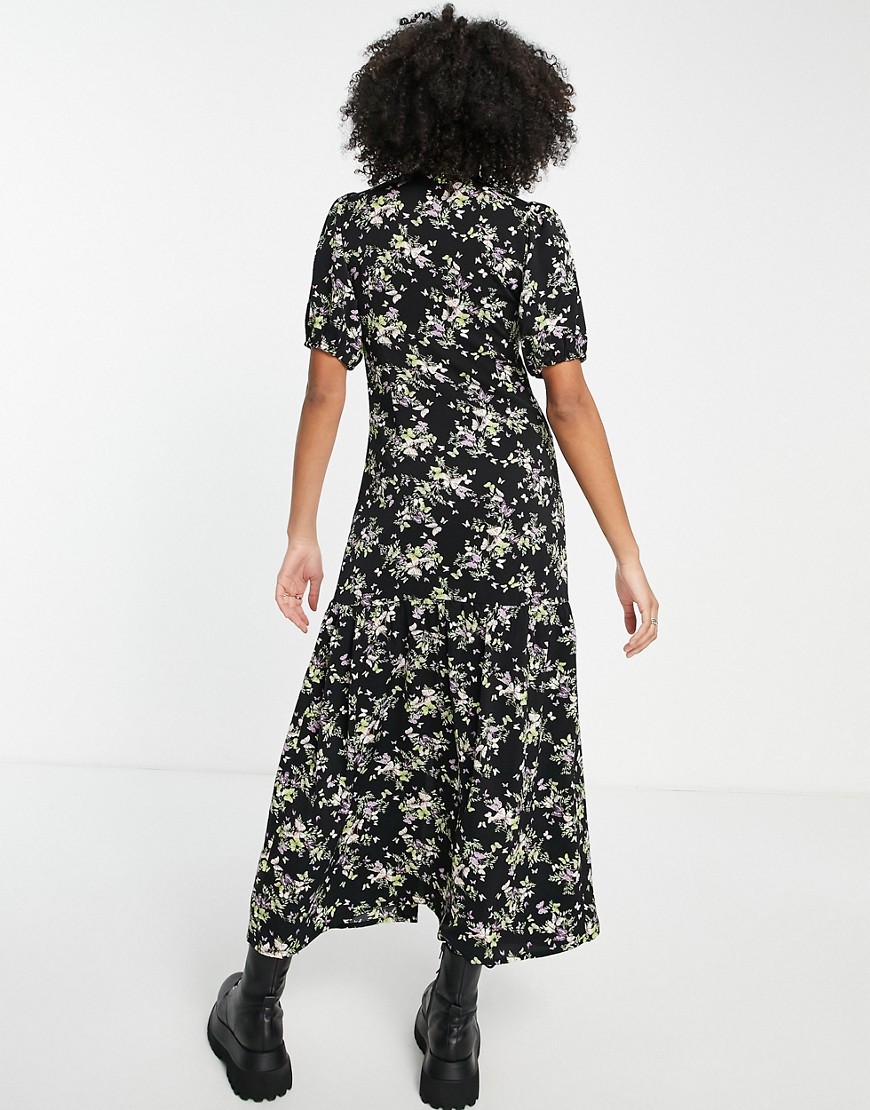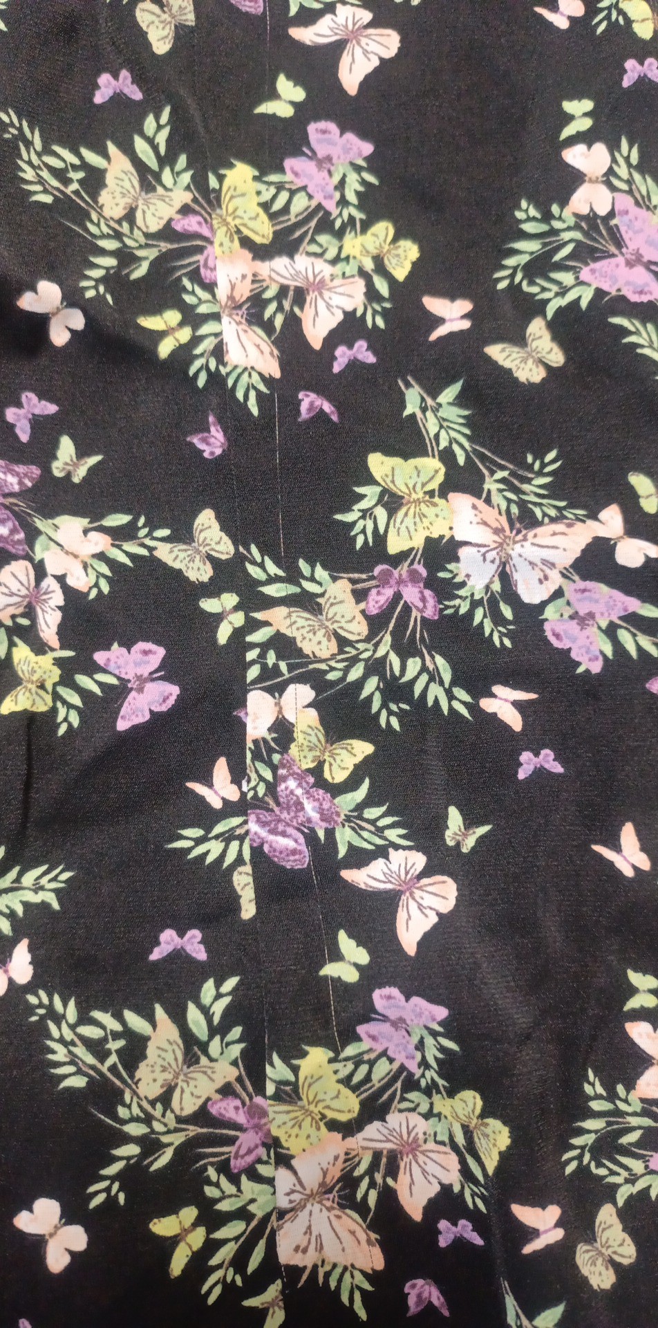 The Frolic czarna satynowa sukienka midi w motyle defekt 36