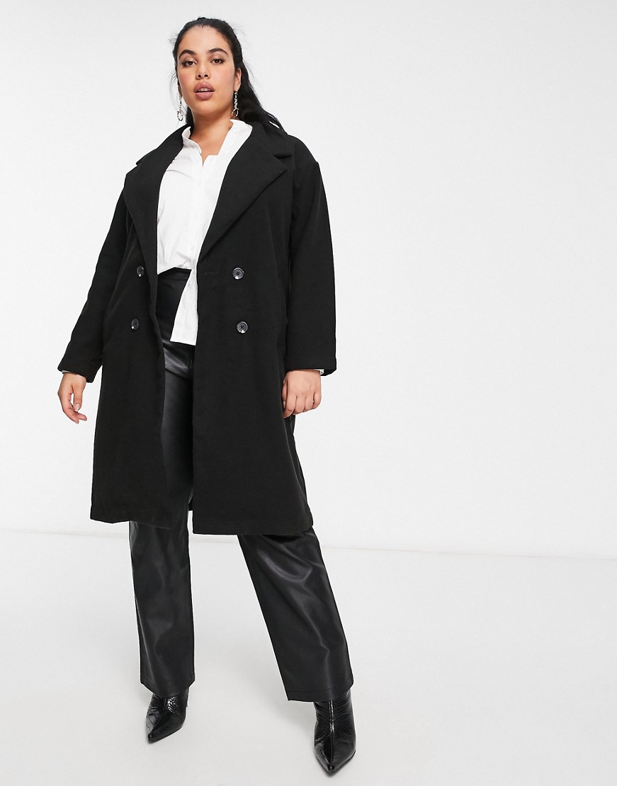 Threadbare Curve czarny płaszcz damski nieocieplany 46