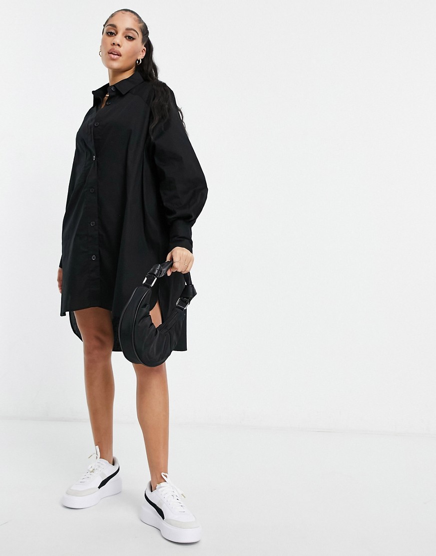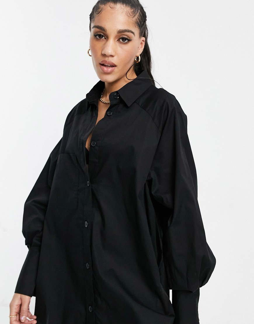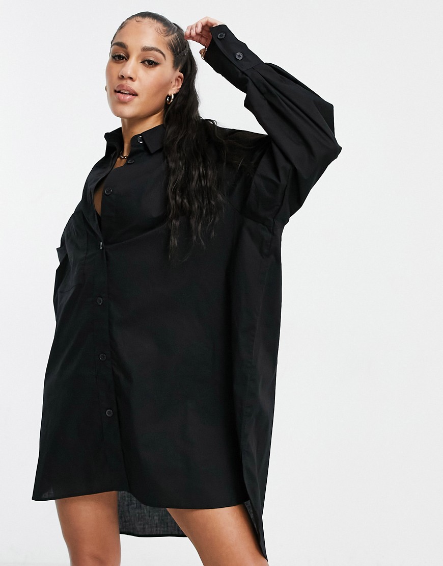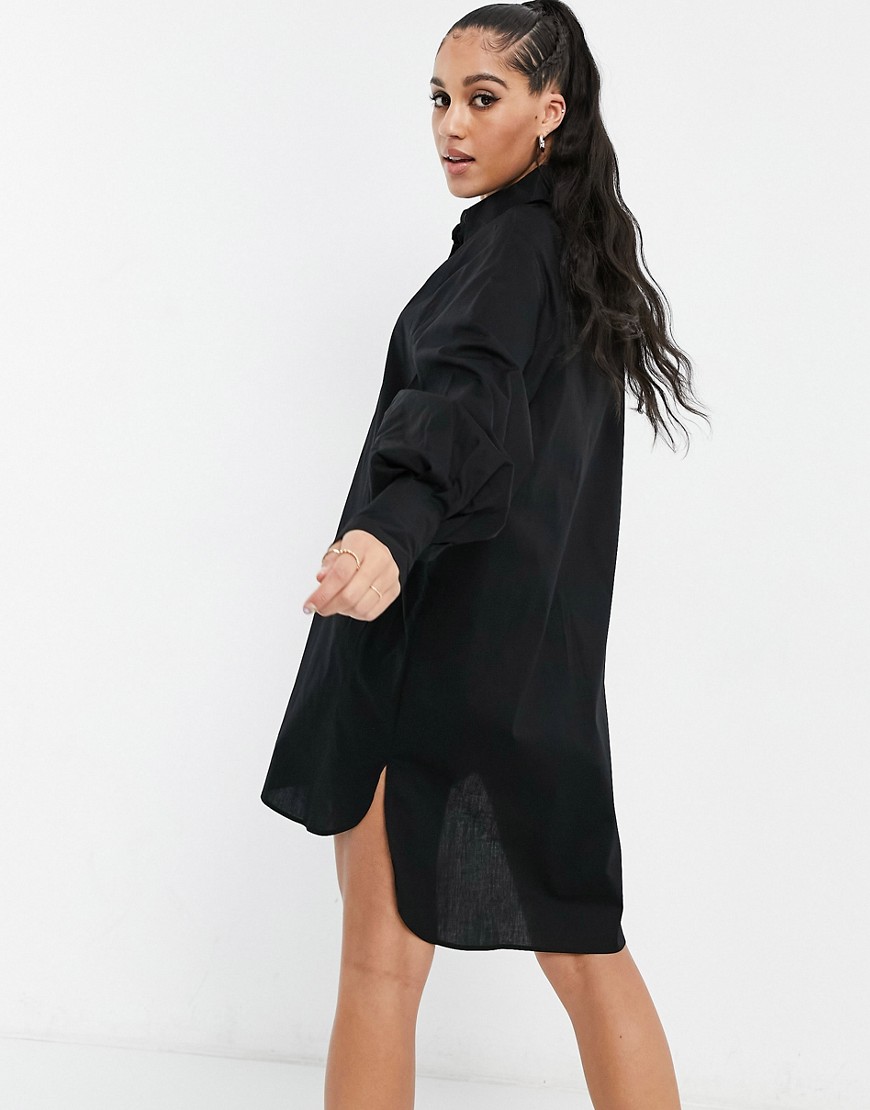 Threadbare czarna sukienka mini koszulowa oversize z przedłużonym tyłem 40