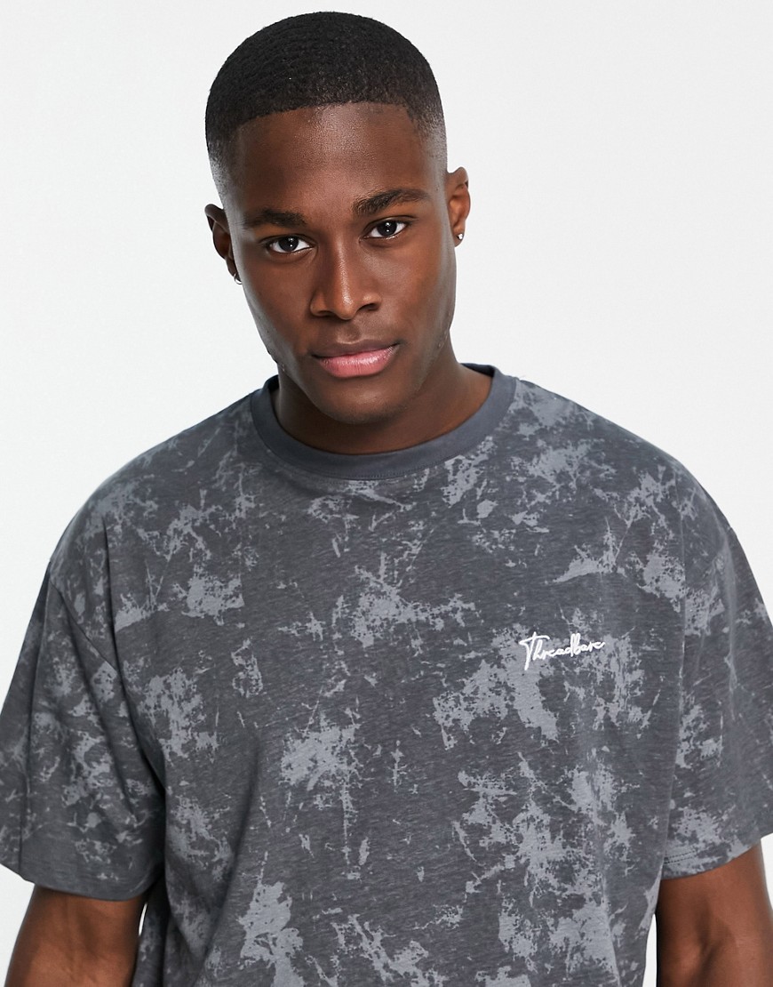 Threadbare grafitowy t-shirt oversize z efektem sprania S