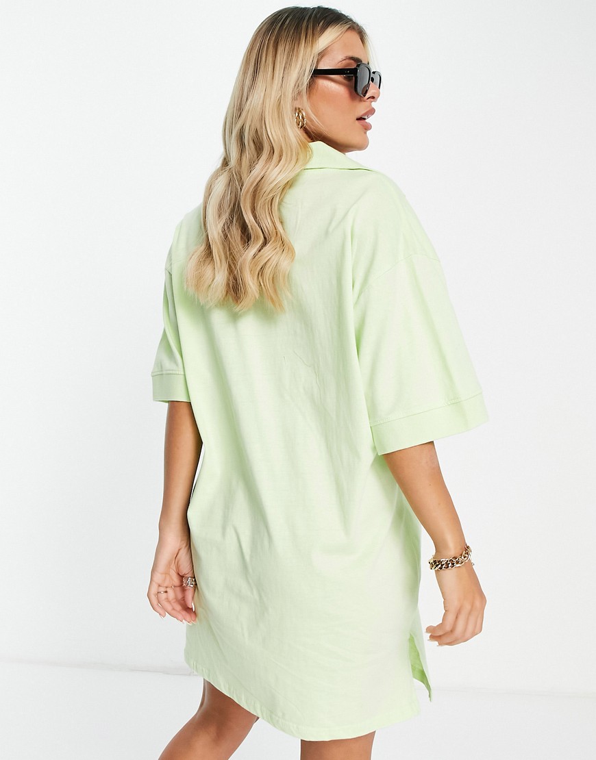 Threadbare limonkowa sukienka mini polo dekolt V 38