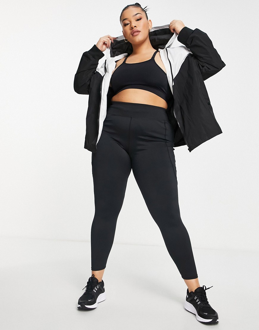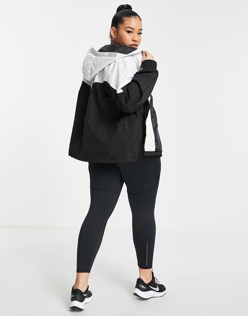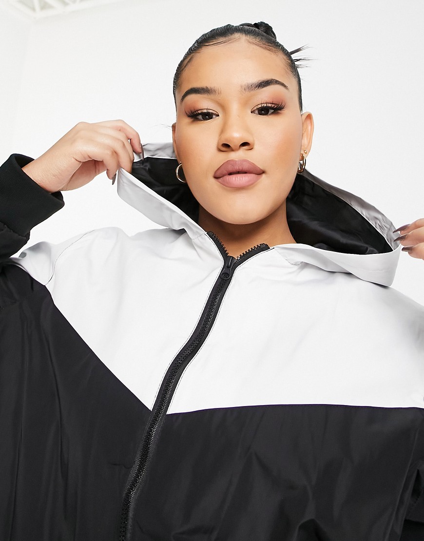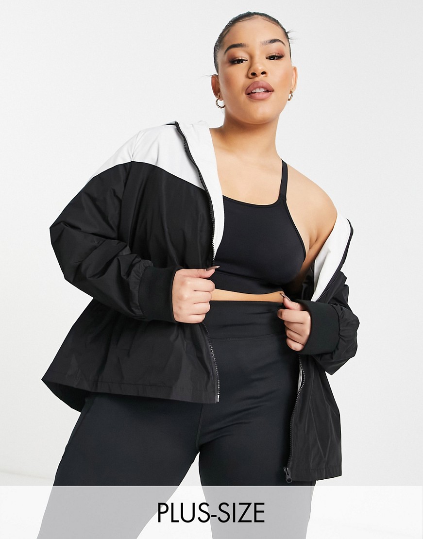 Threadbare Plus czarn biała kurtka do biegania z kapturem wiatrówka 50