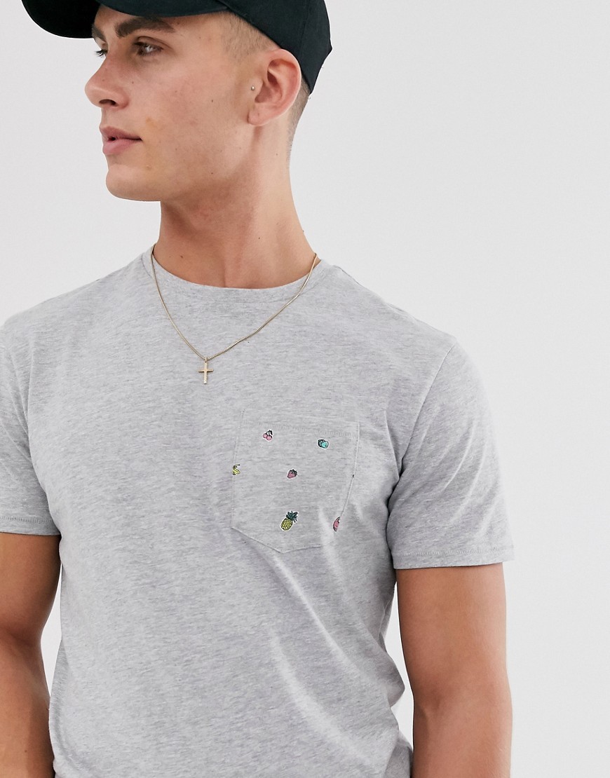 Threadbare szary T-shirt dopasowany kieszeń na piersi M
