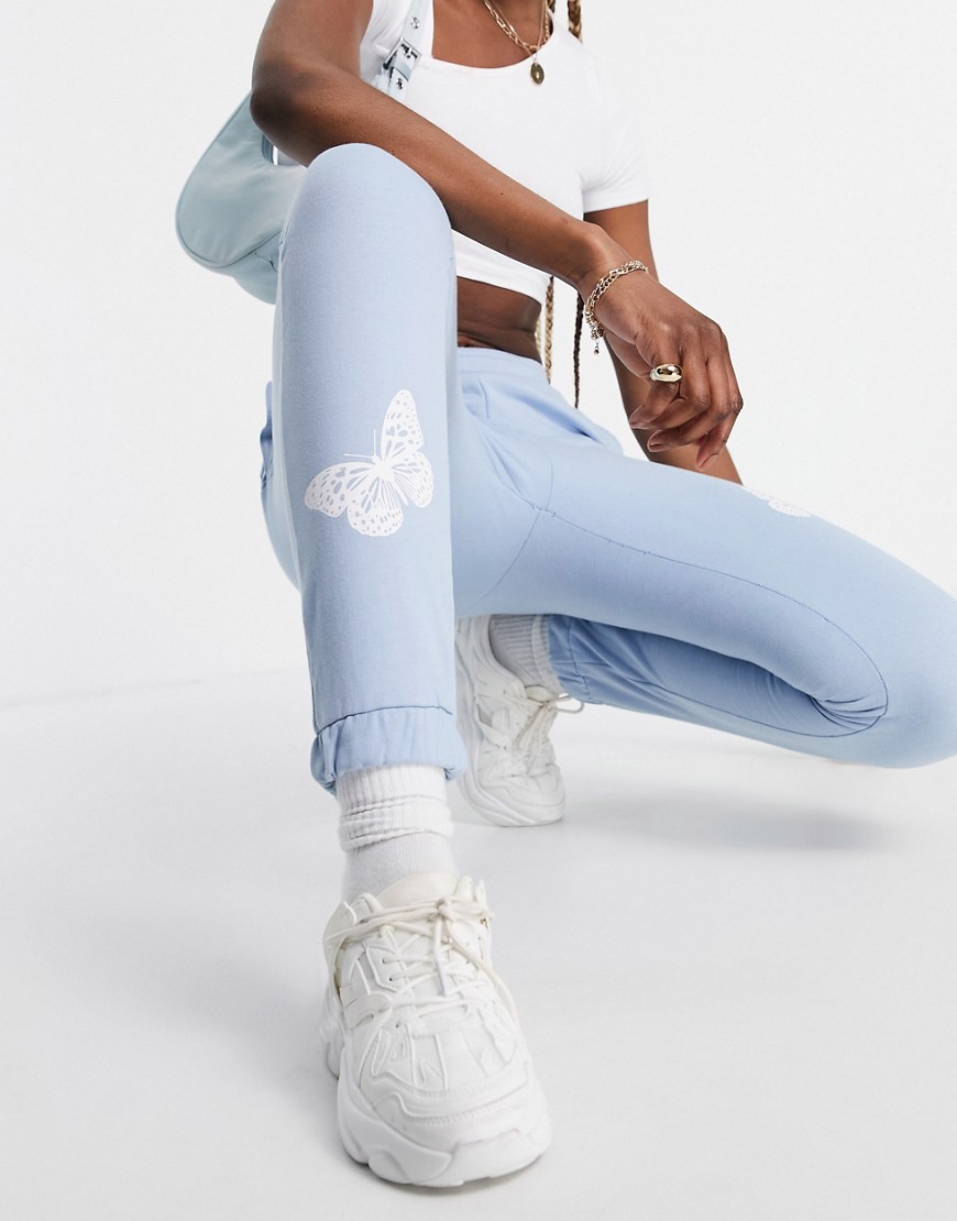 Threadbare Tall damskie niebieskie spodnie joggersy z nadrukiem motyli L
