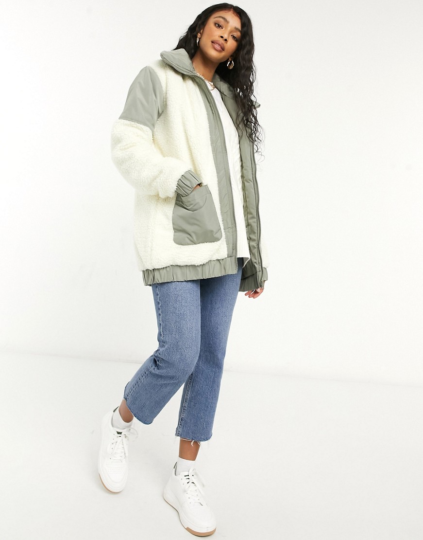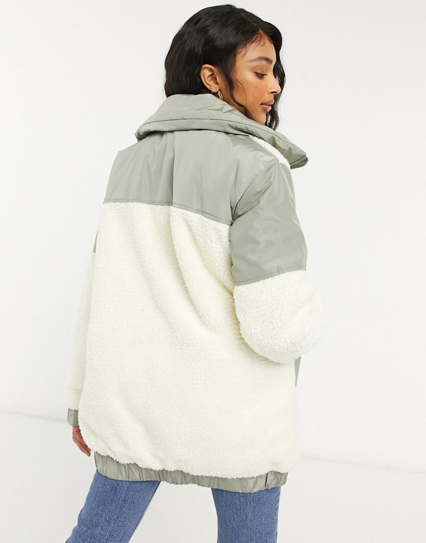 Threadbare Tray Kurtka ze sztucznego kożuszka kolor kremowy ze wstawkami DEFEKT 40