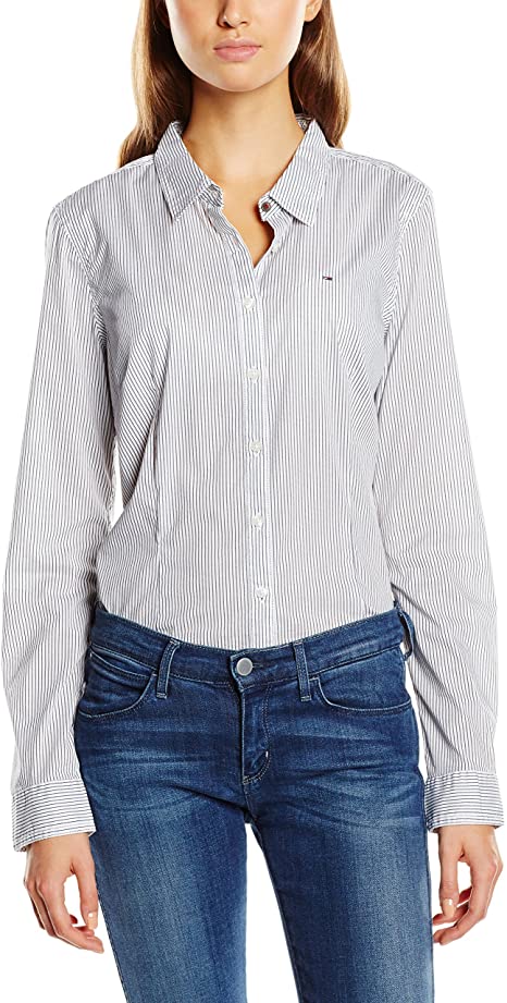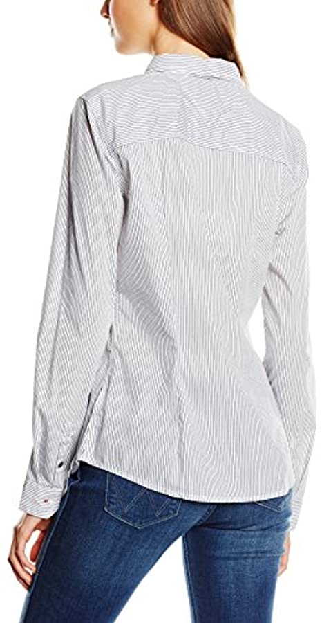 Tommy Hilfiger Szara koszula damska w paski slim z długim rękawem i kołnierzykiem defekt 36