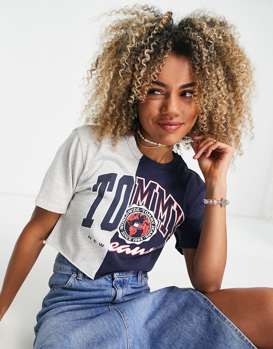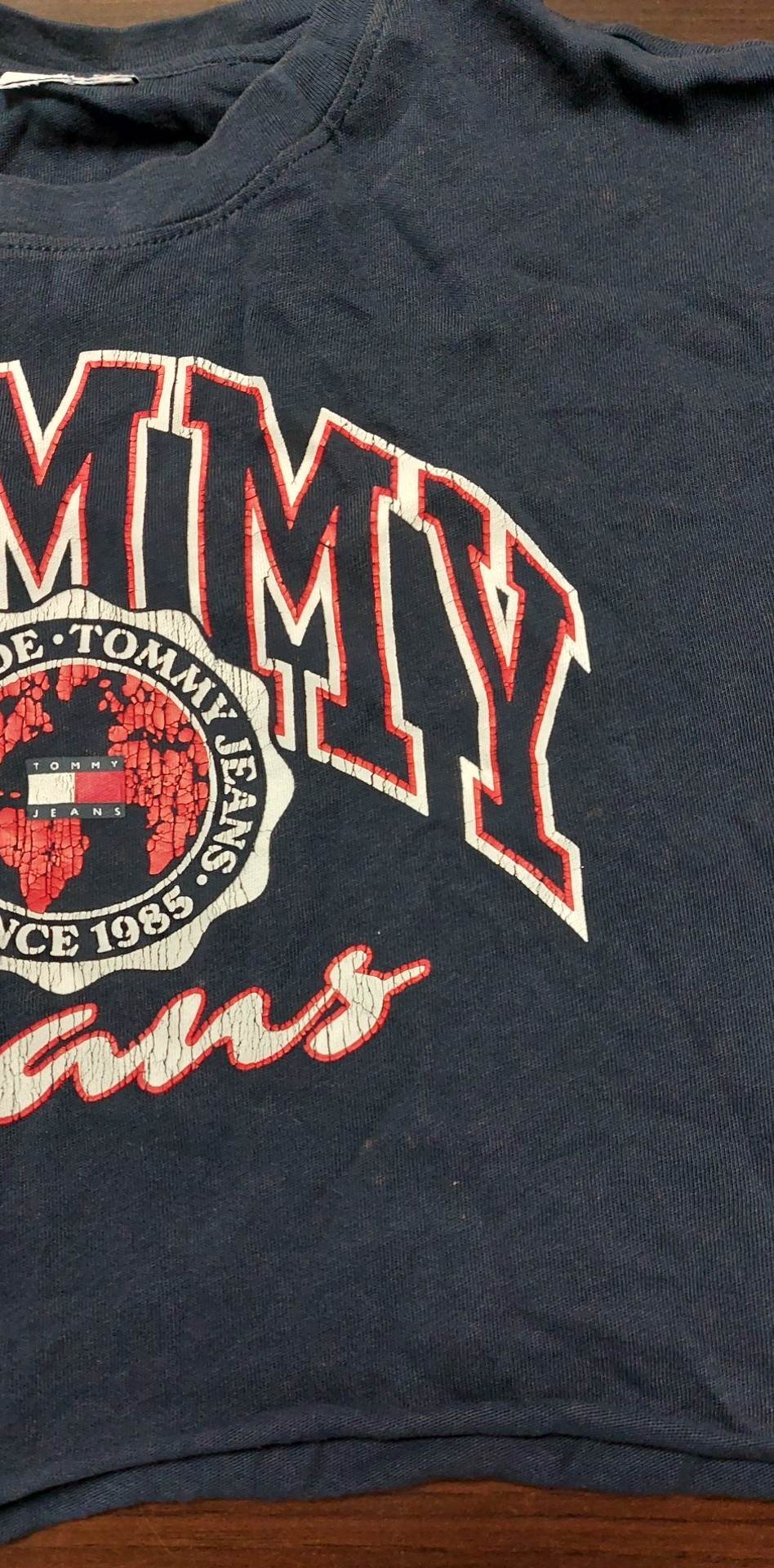 Tommy Jeans Bawełniany granatowy T-shirt oversize defekt S