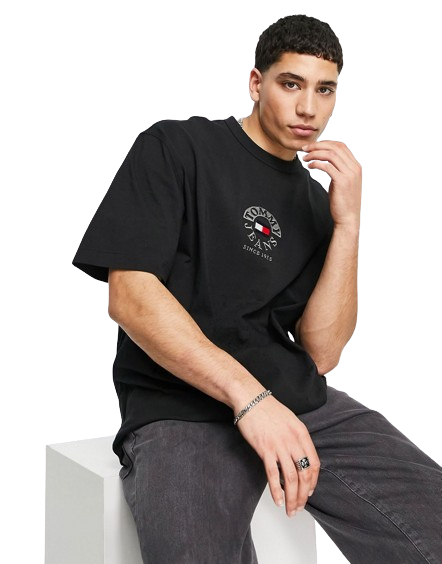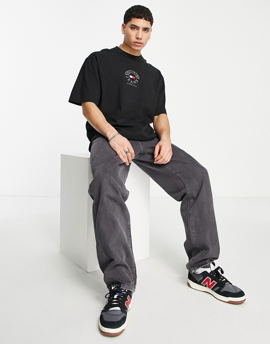 Tommy Jeans klasyczny czarny T-shirt oversize z logo XS