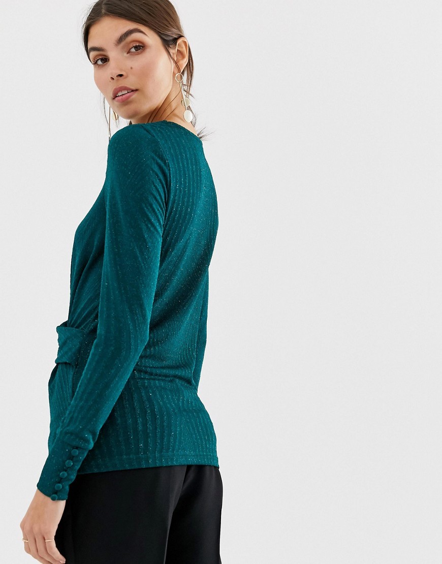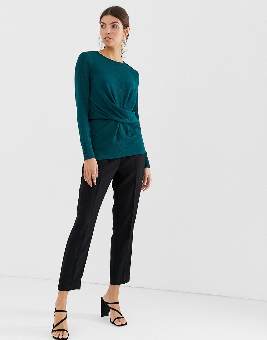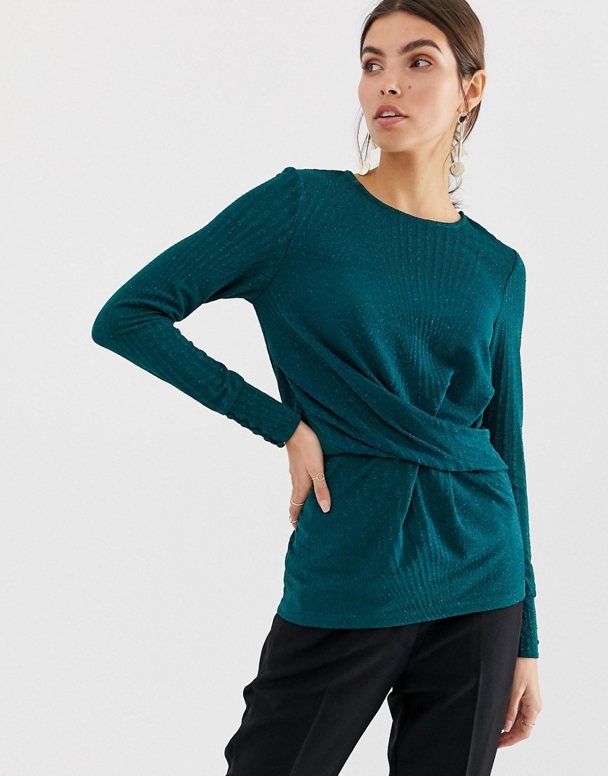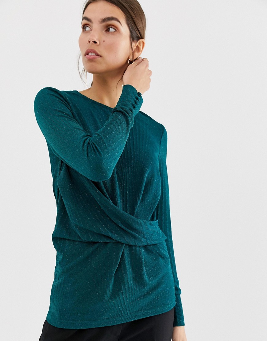 Top Bluzka zielona z zebranym przodem długi rękaw M 38
