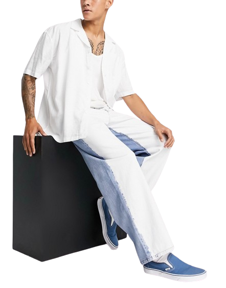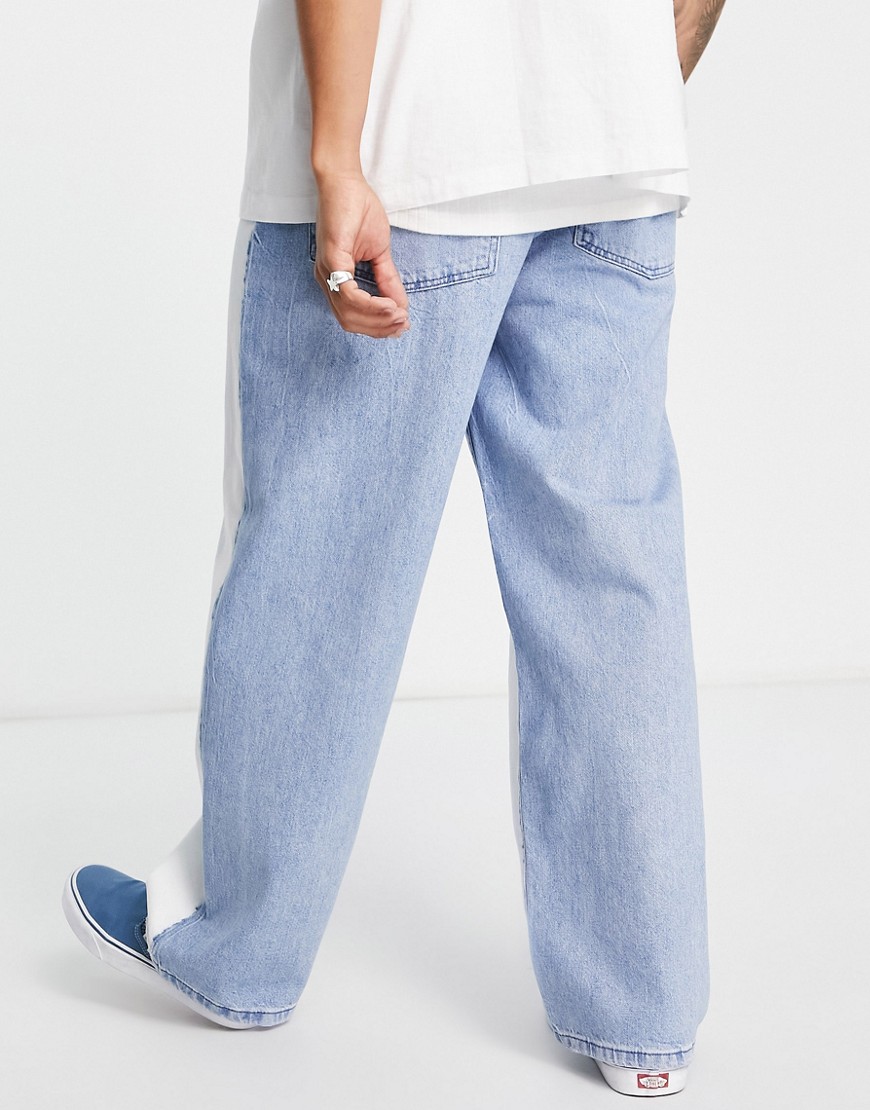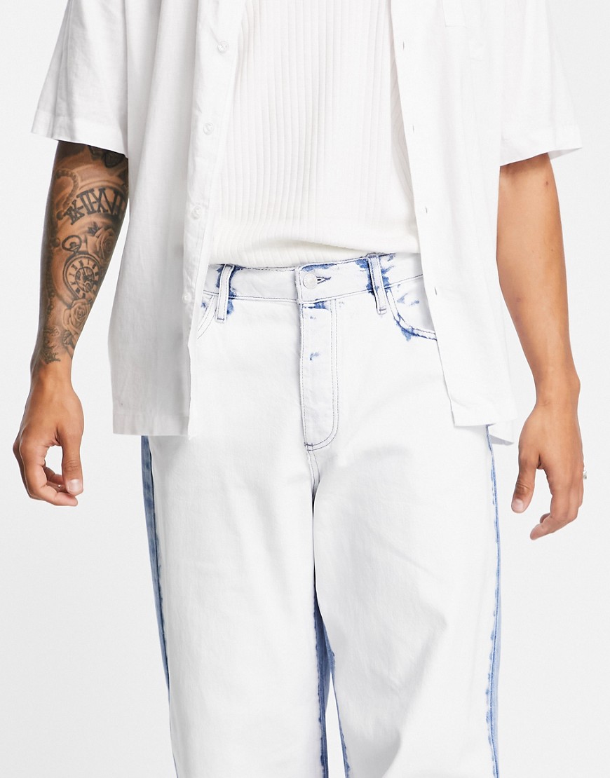 Topman biało niebieskie jeansy o bardzo obszernym kroju defekt W34 L32