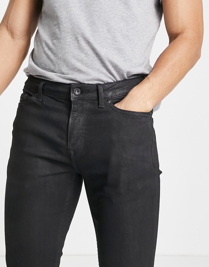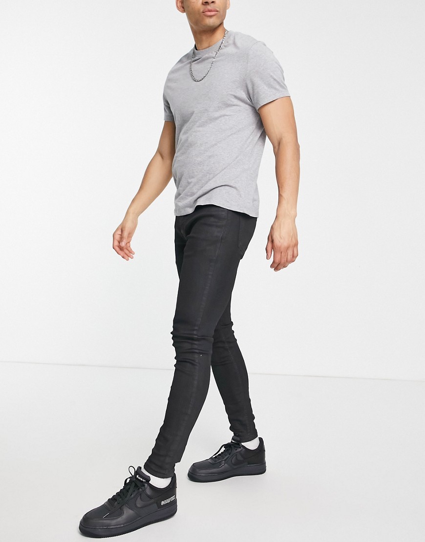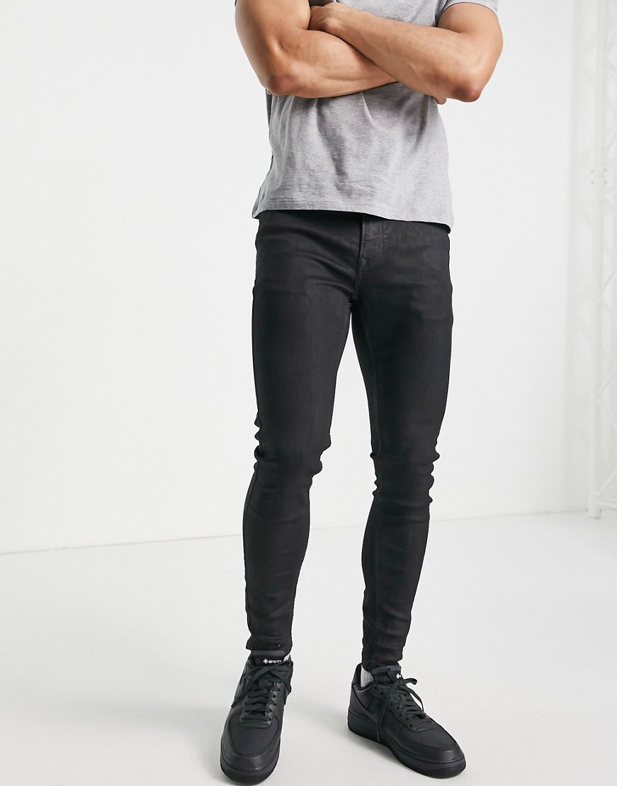 Topman czarne bardzo obcisłe jeansy woskowane W38 L32