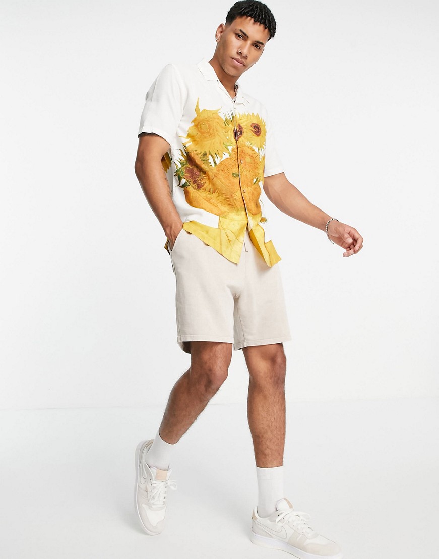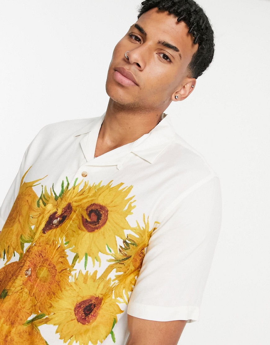 Topman męska koszula ecru nadruk Słoneczniki Vincent van Gogh defekt M