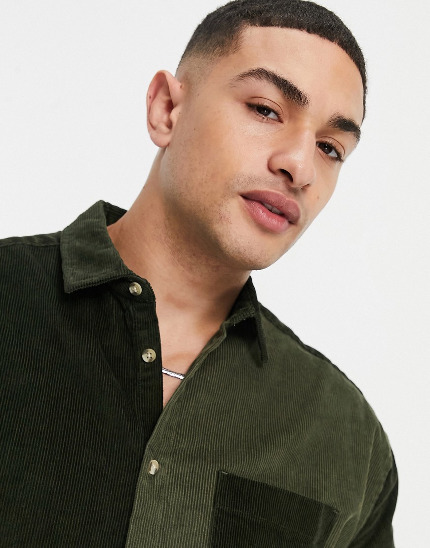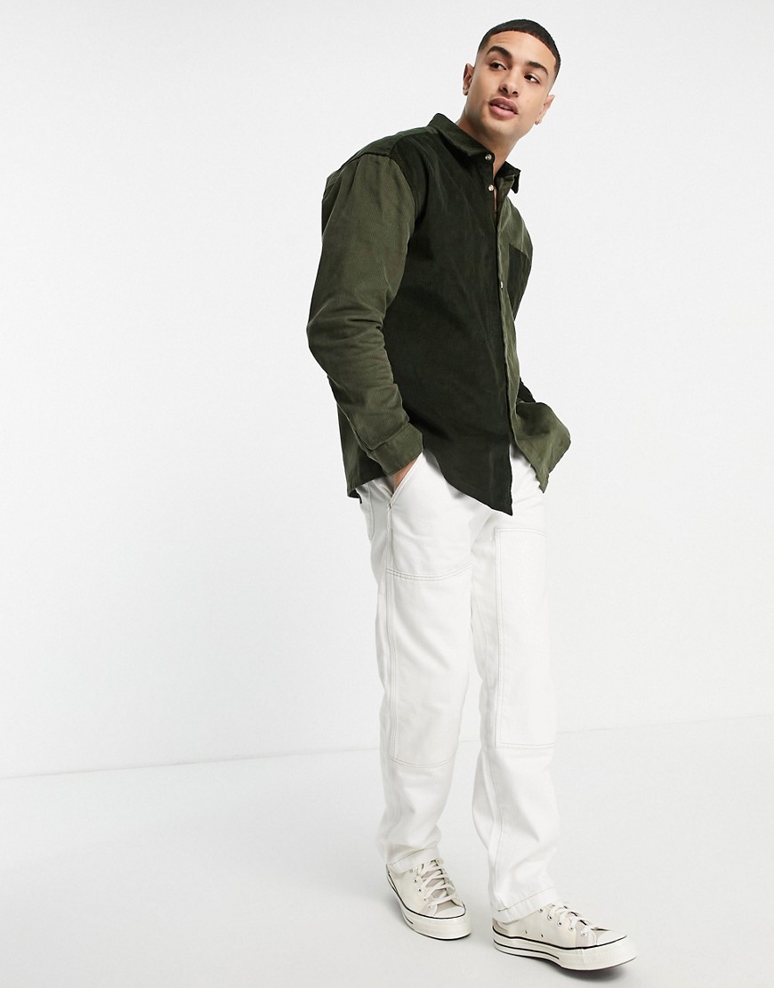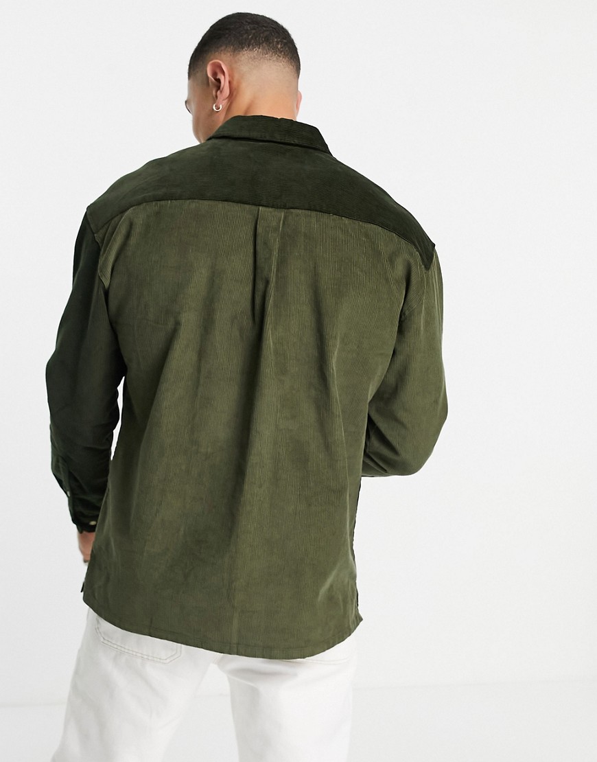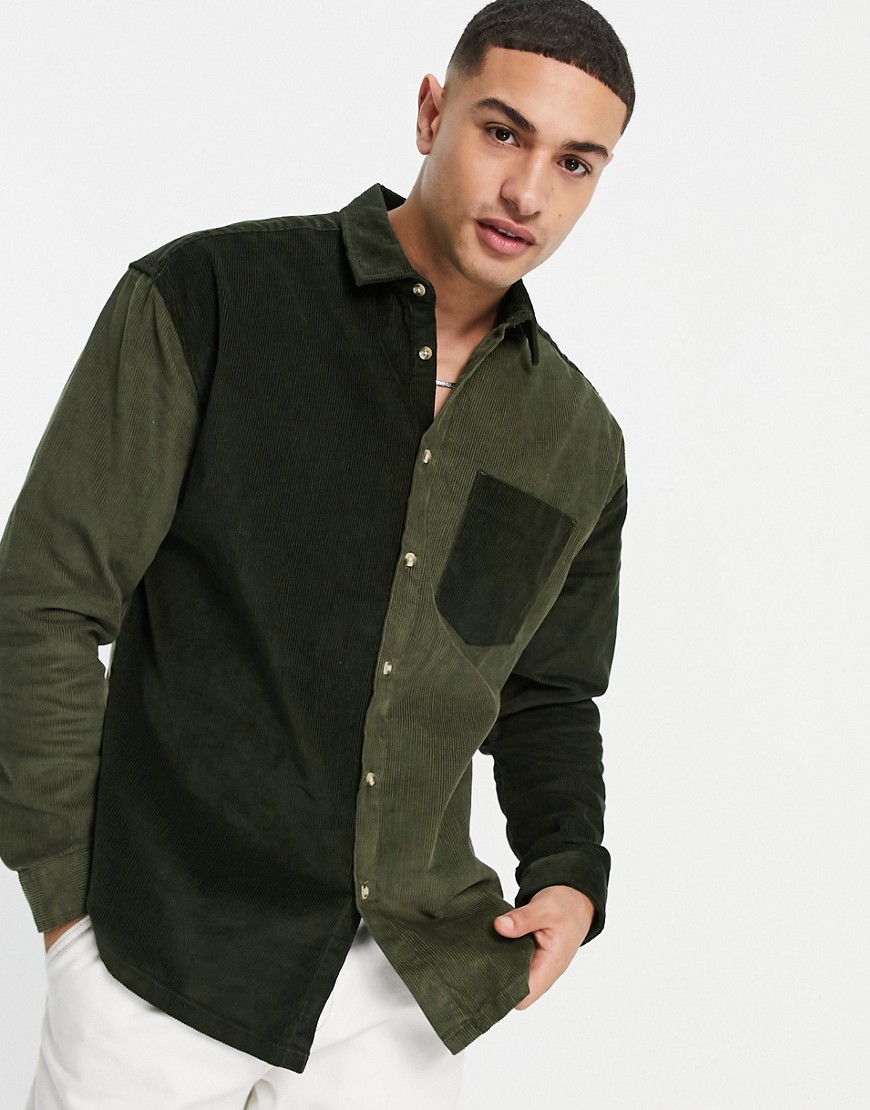 Topman męska sztruksowa koszula w kolorze khaki z łączonych elementów defekt XS