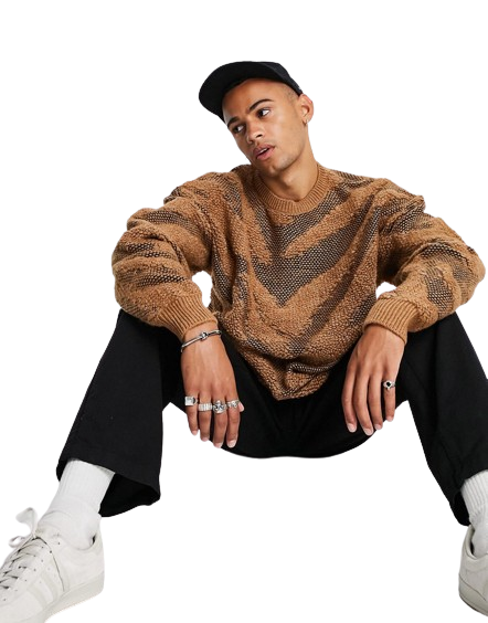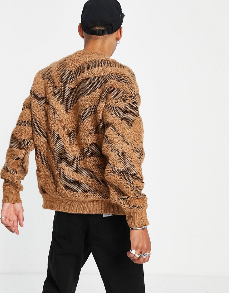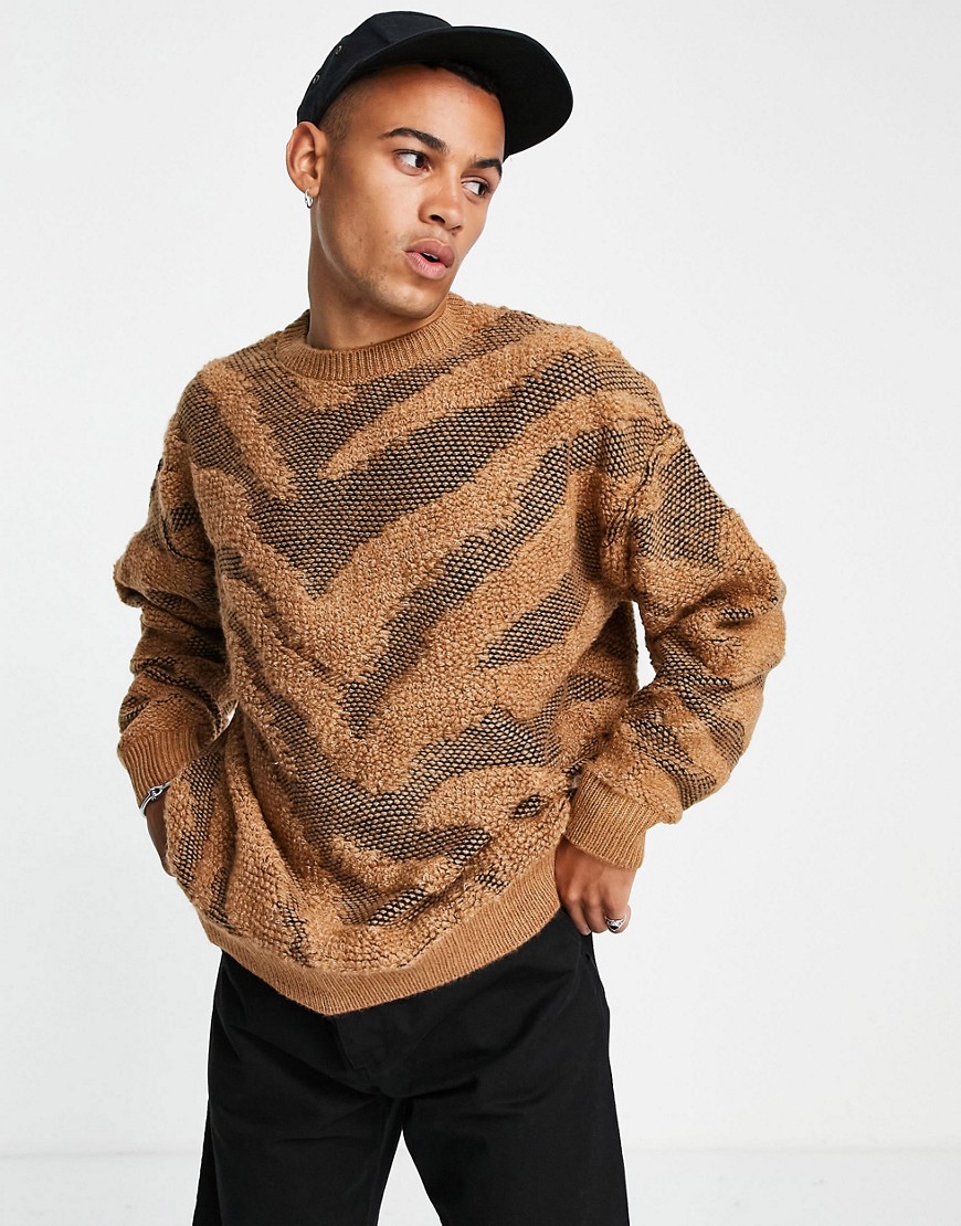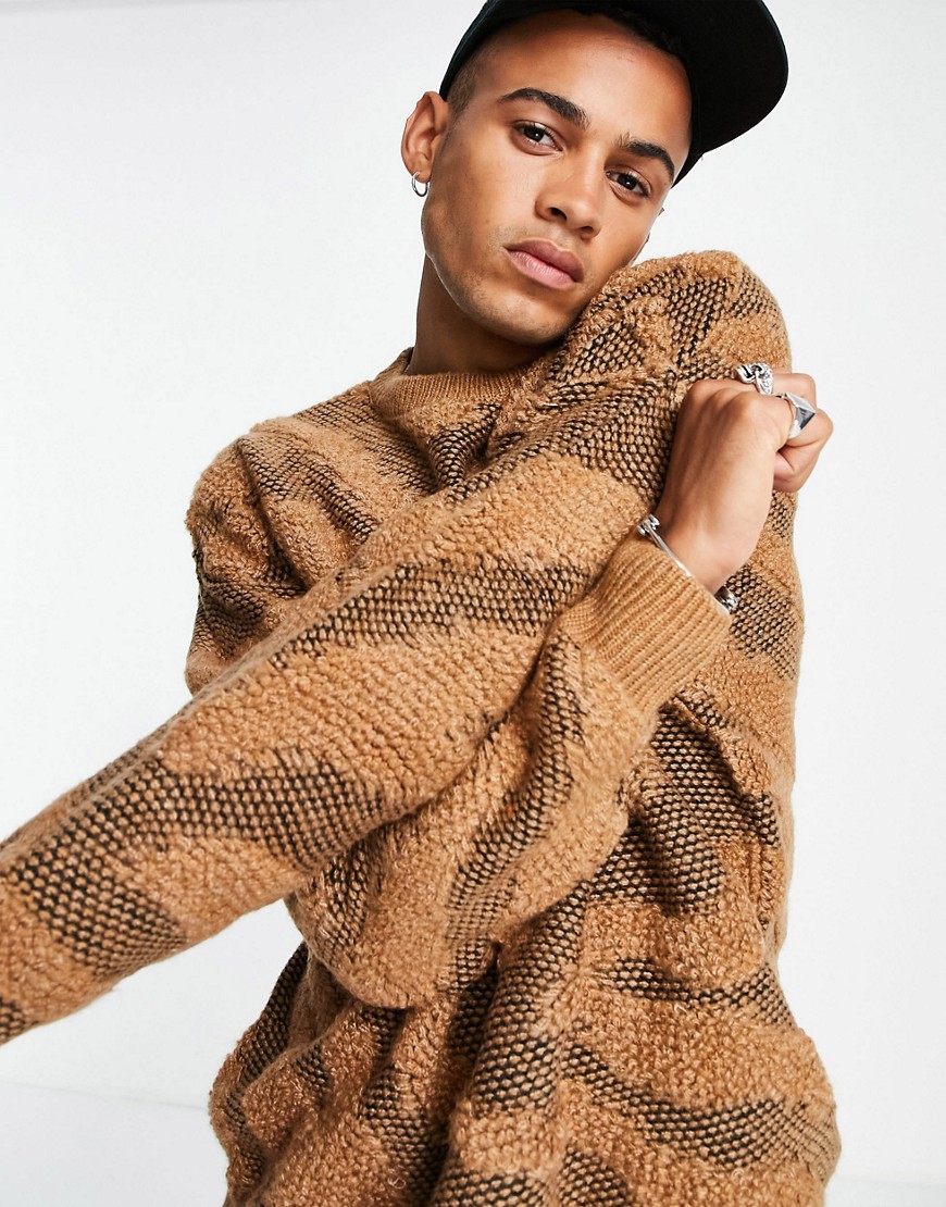 Topman męski brązowy fakturowany sweter paski zebry S