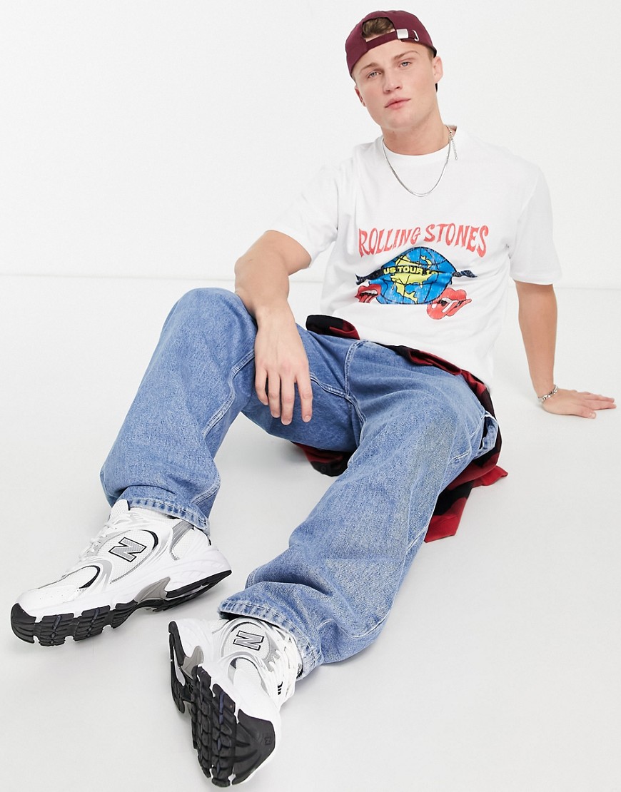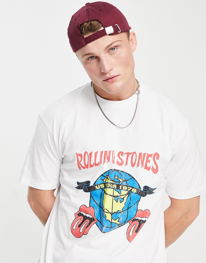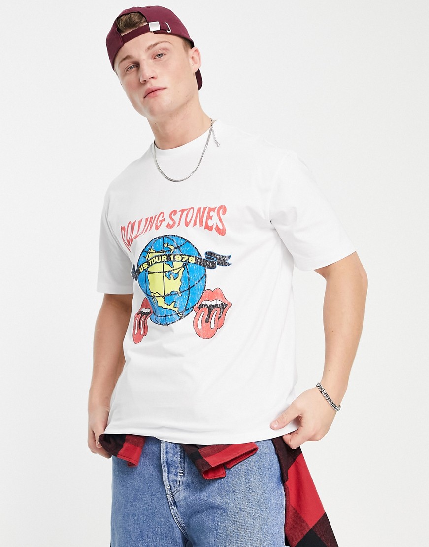 Topman męski t-shirt oversize w kolorze ecru z motywem trasy koncertowej The Rolling Stones XL