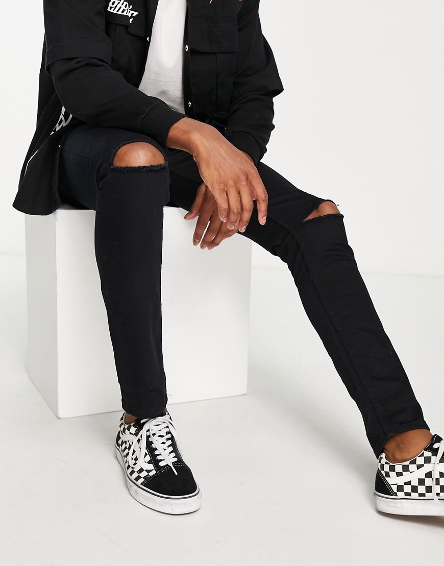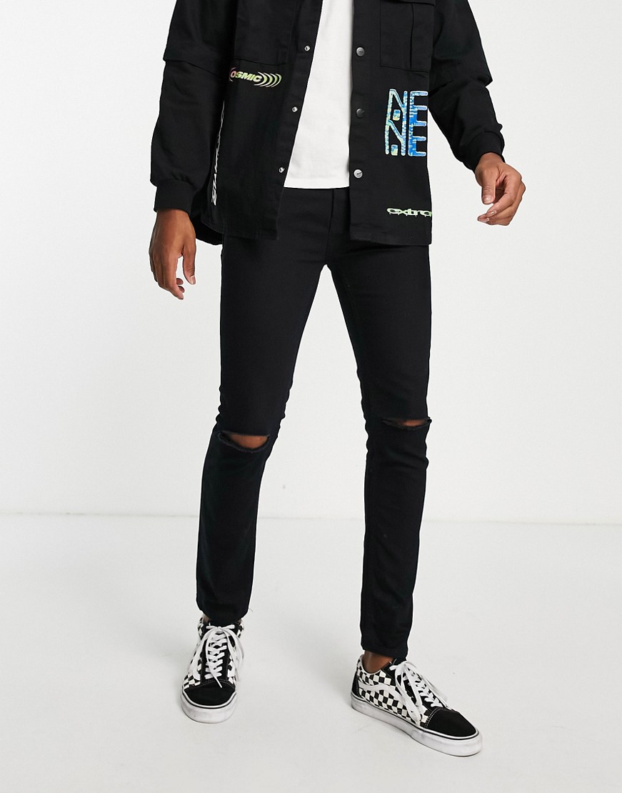 Topman męskie czarne spodnie jeansowe skinny z dziurami W36 L32