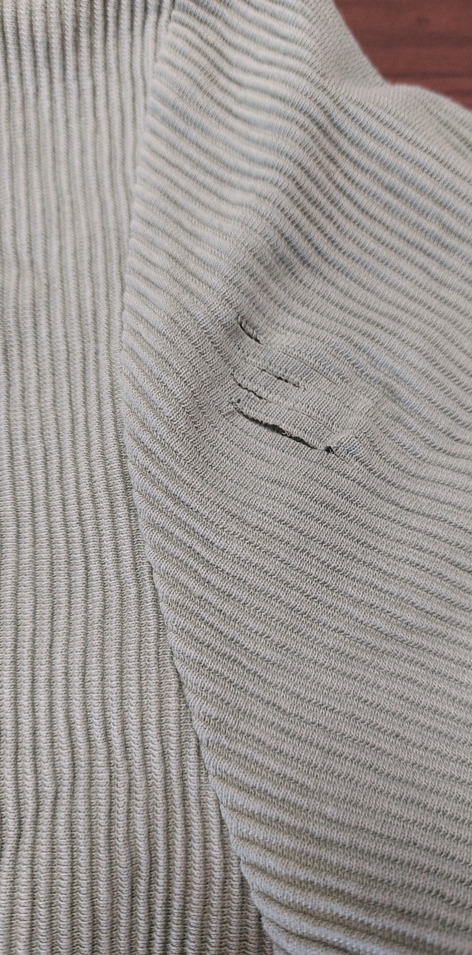 • Defekt przetarty materiał na rękawie z przodu, zdjęcie w galerii produktu