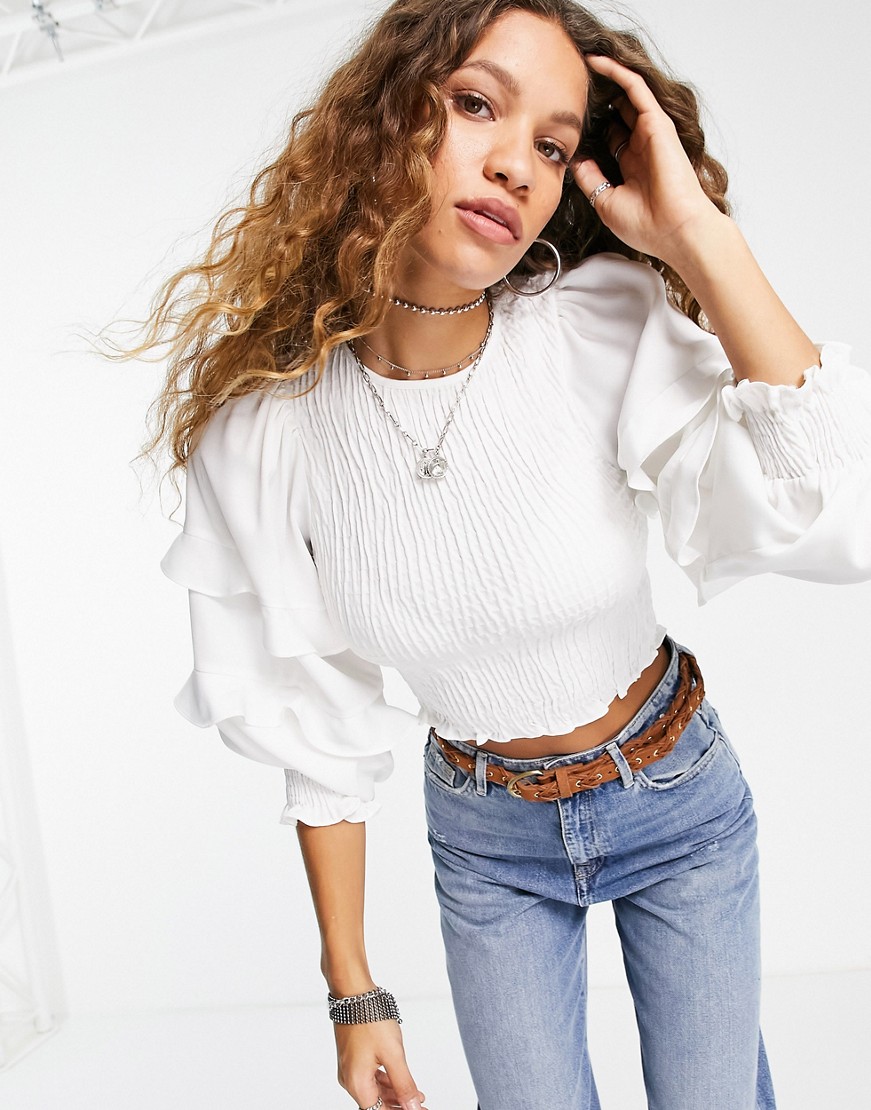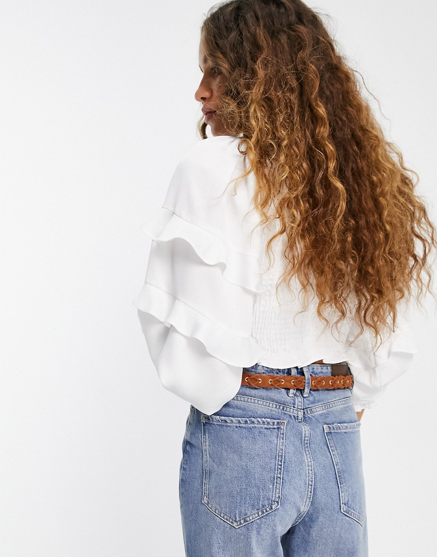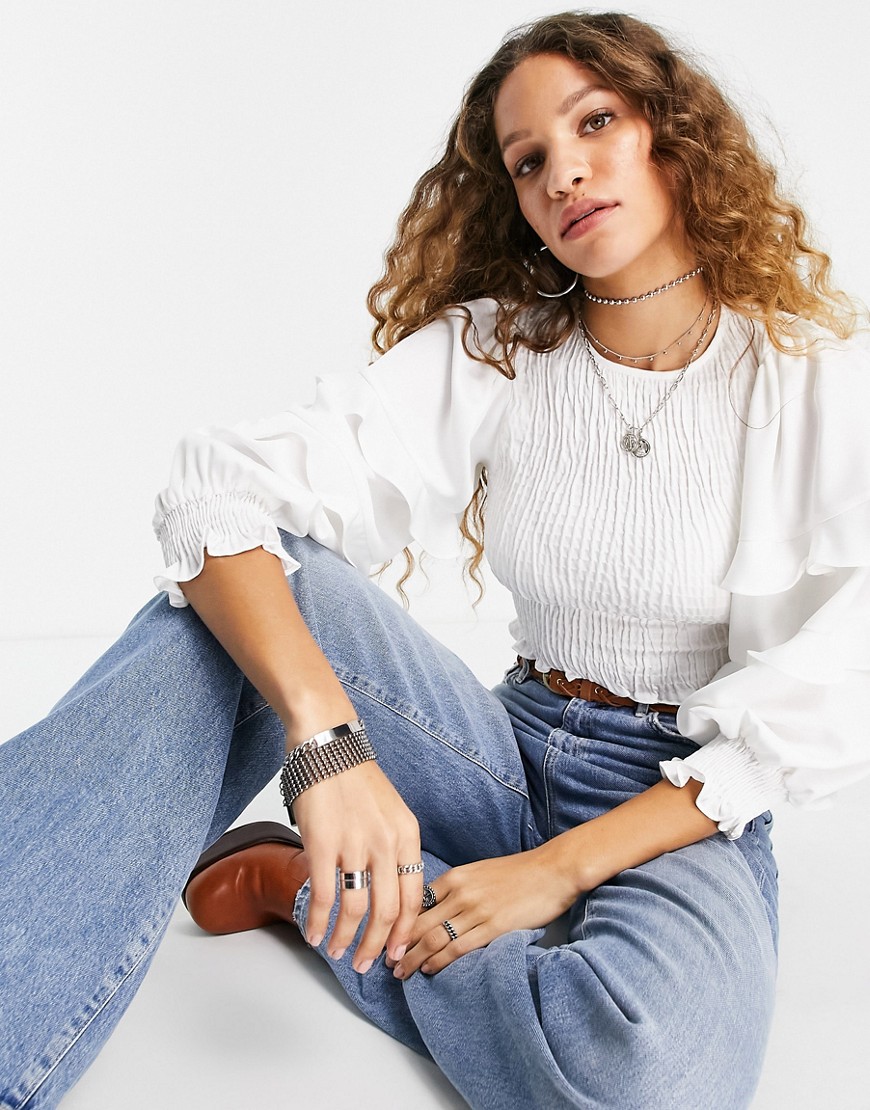 Topshop biała warstwowa bluzka z ozdobnym marszczeniem 40