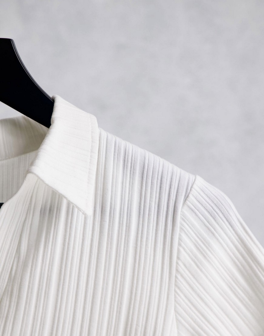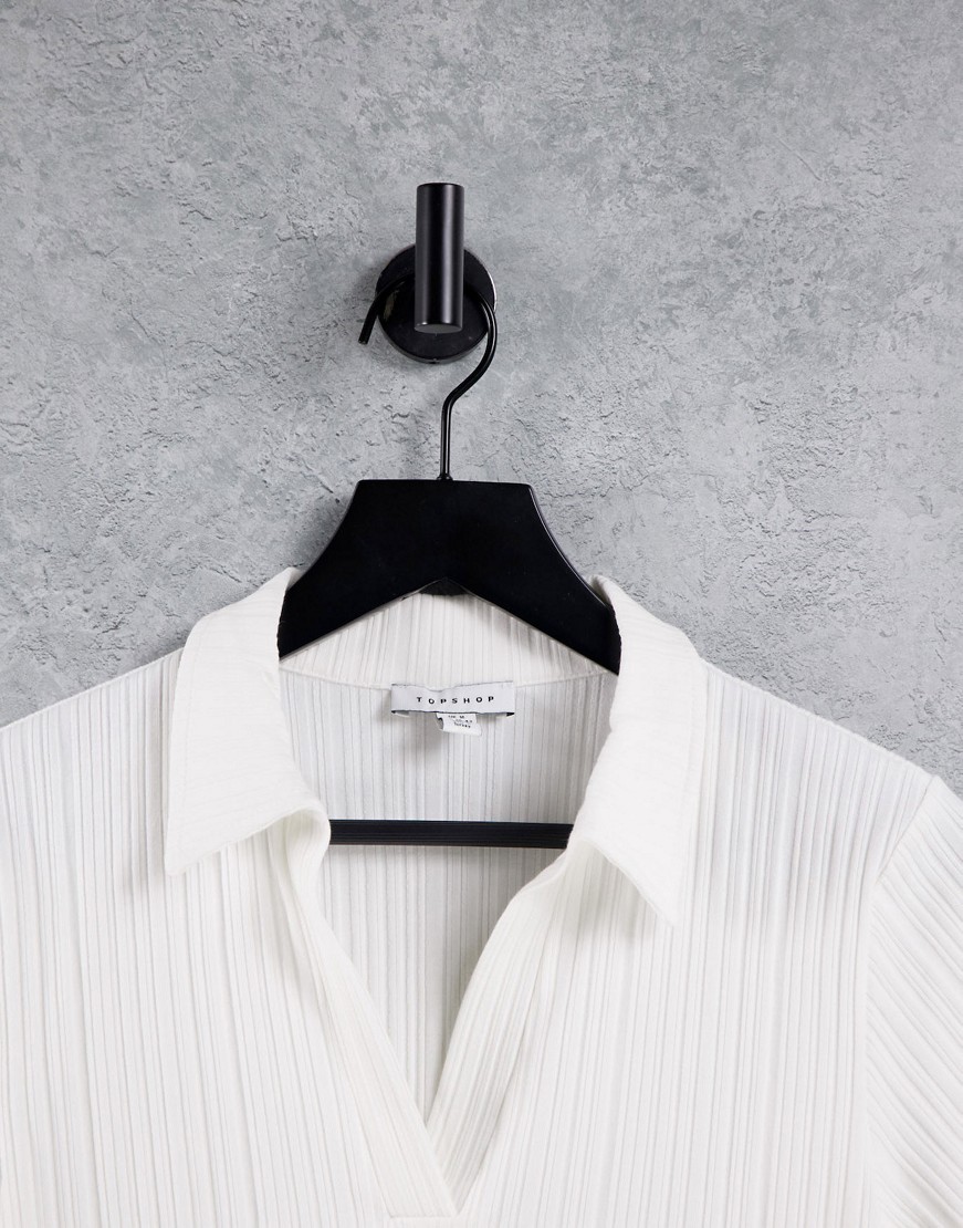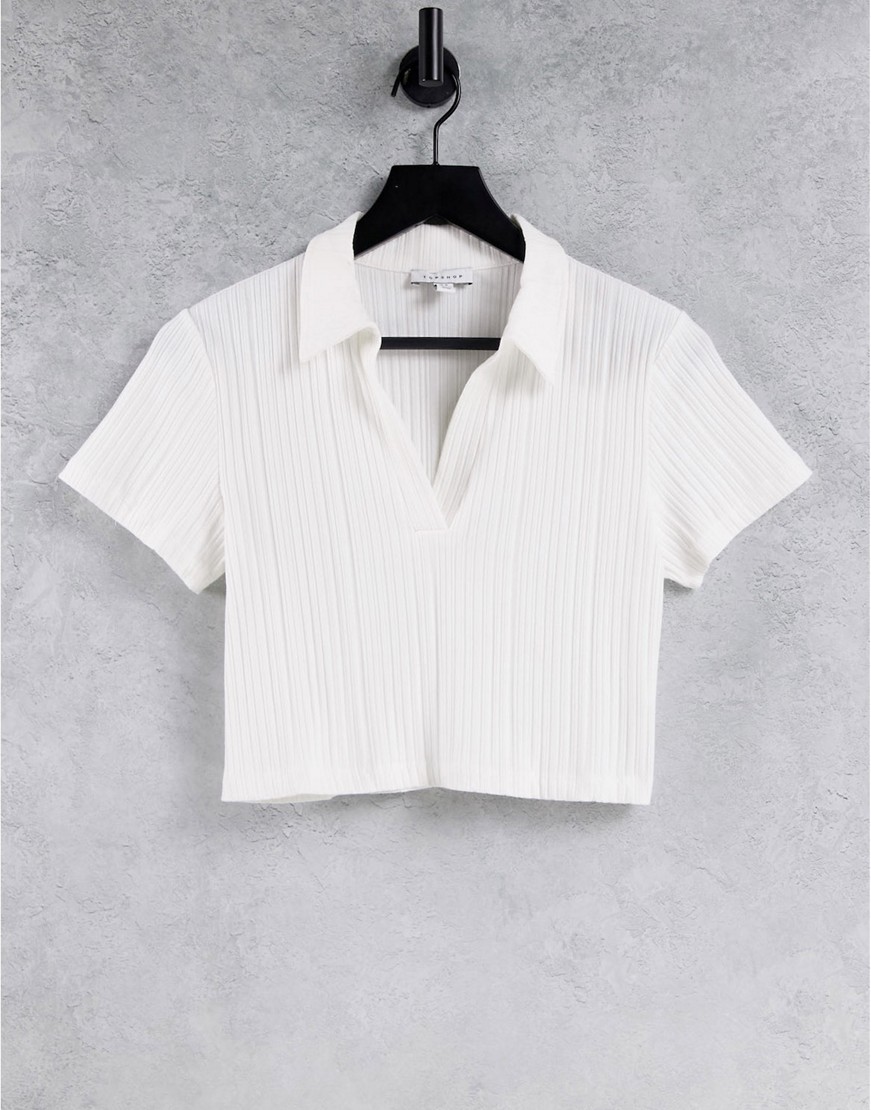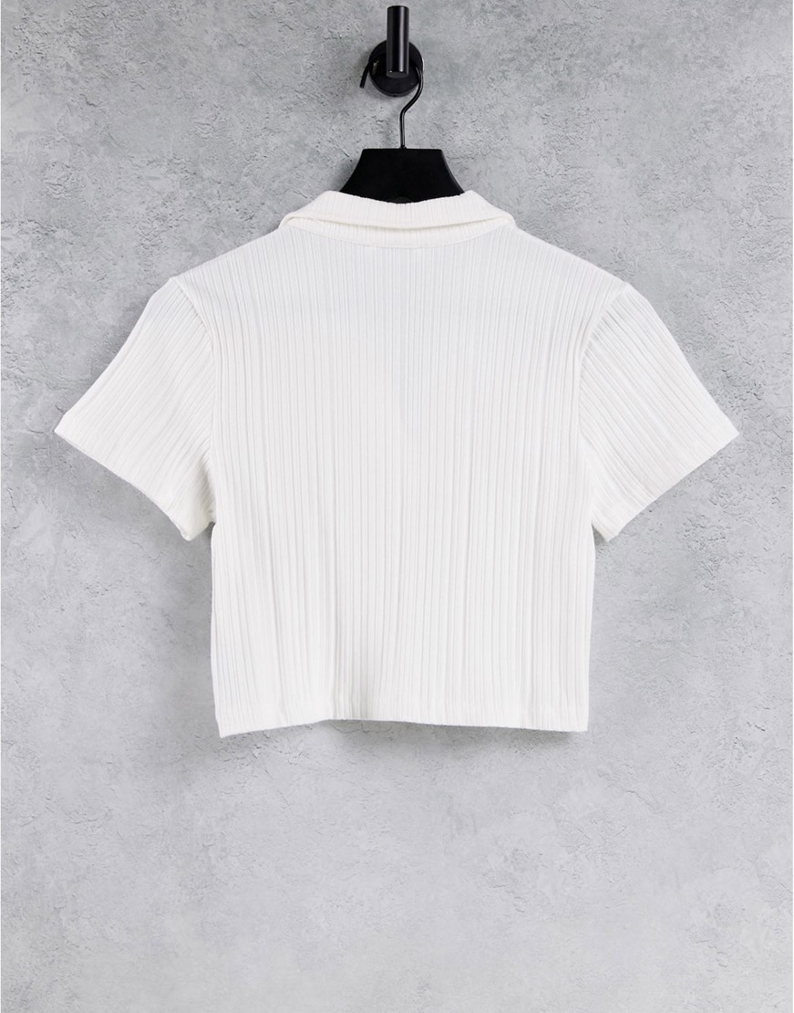 Topshop biały damski prążkowany t-shirt z kołnierzykiem M