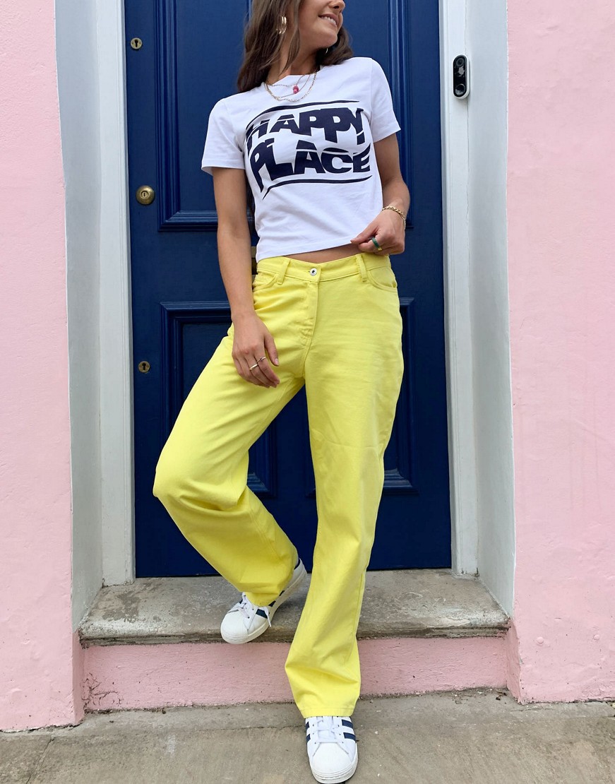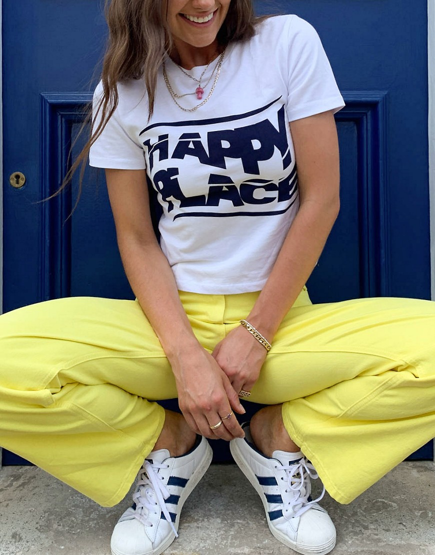 Topshop biały T-shirt z nadrukiem „Happy Place” M