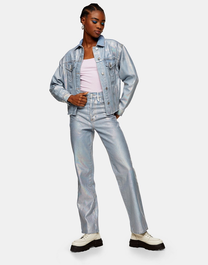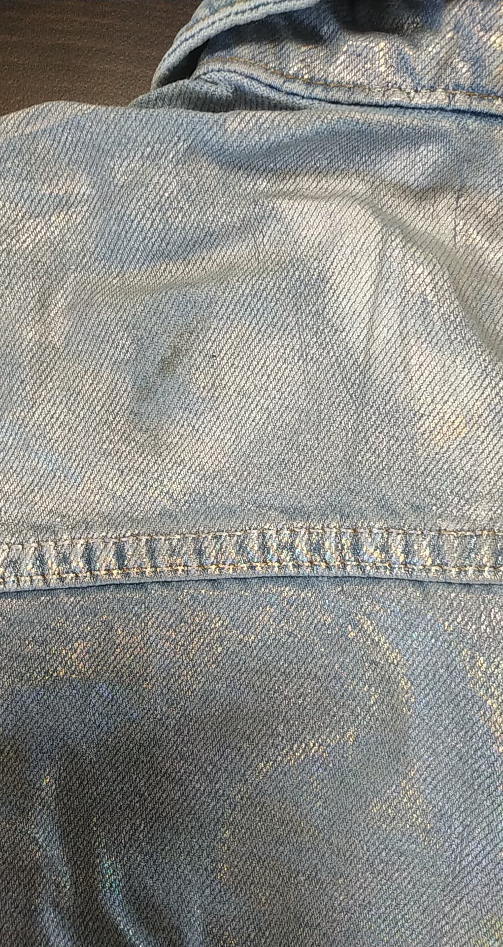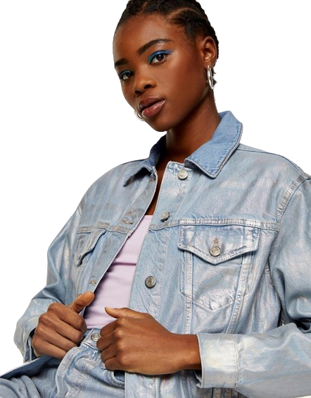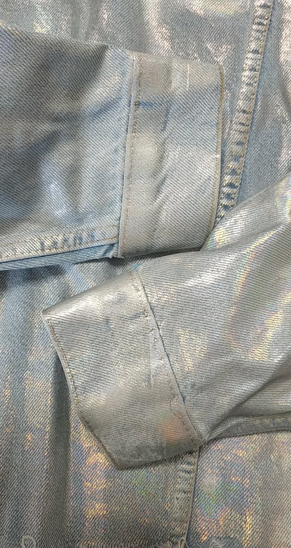 - Sztywny denim z błyszczącą powłoką