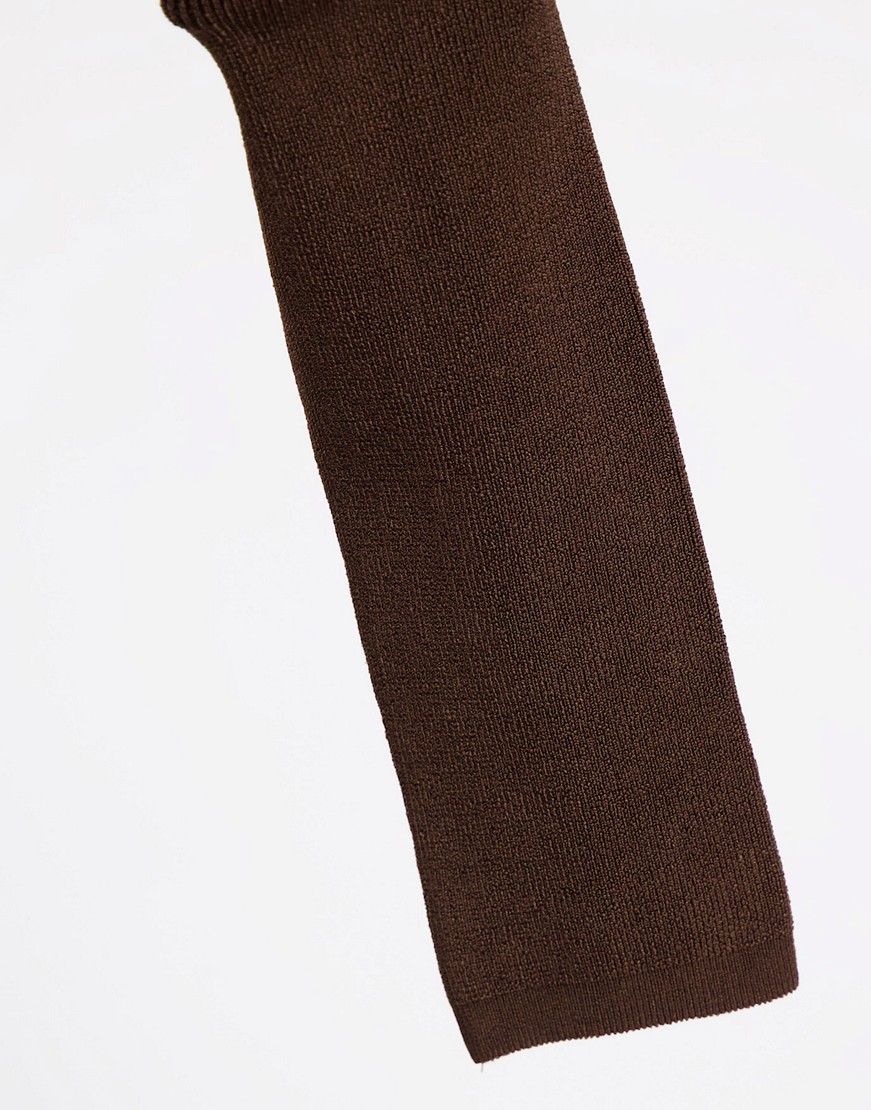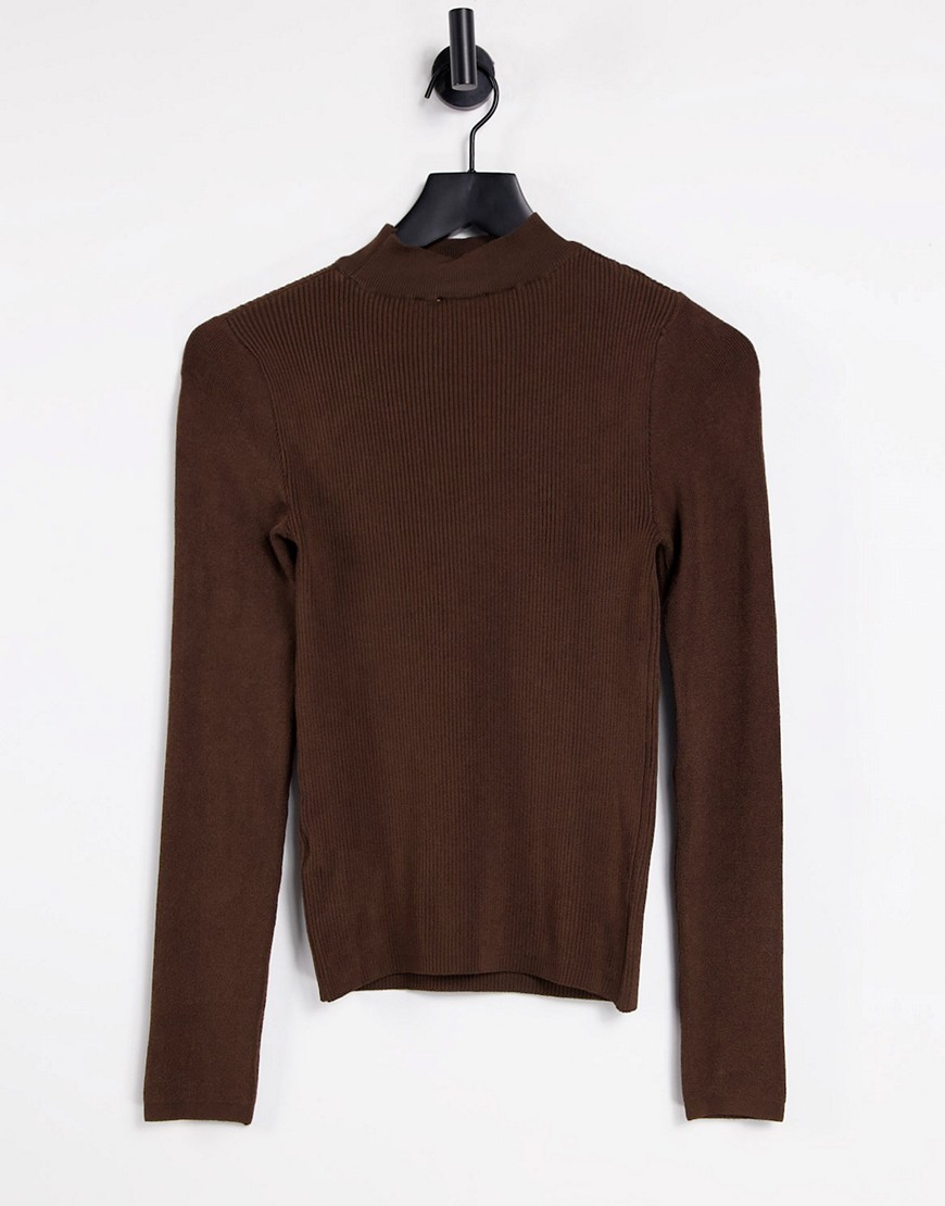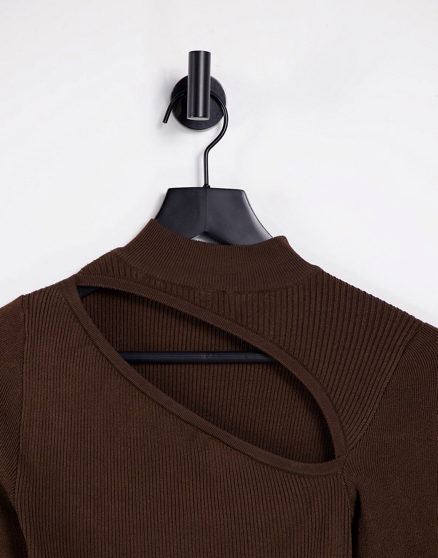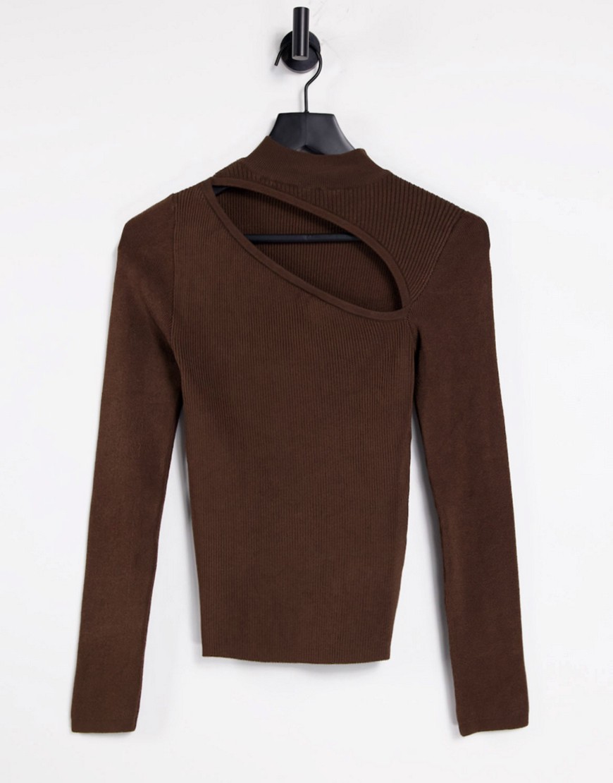 Topshop brązowy sweterek z długim rękawem i wycięciem z przodu S