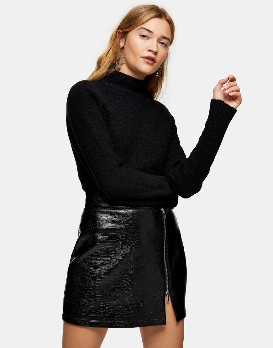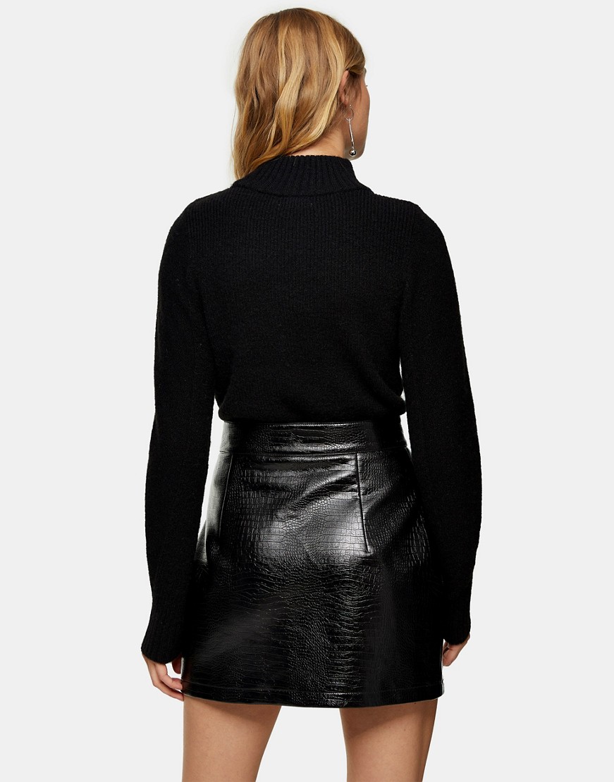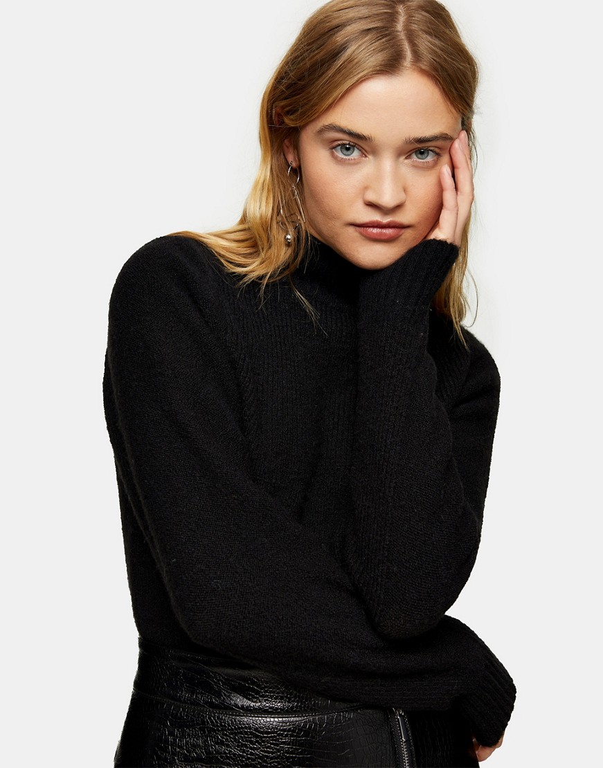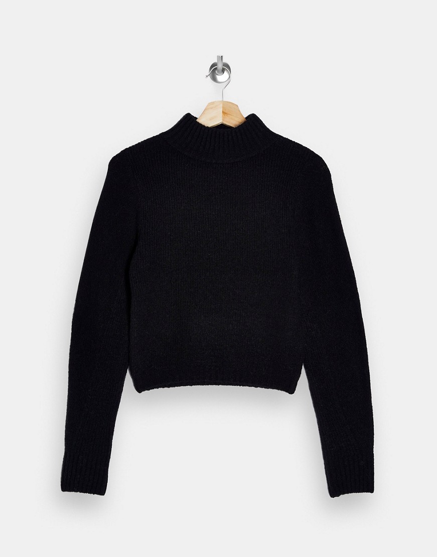 Topshop ciepły czarny dzianinowy sweter krótki krój półgolf XS