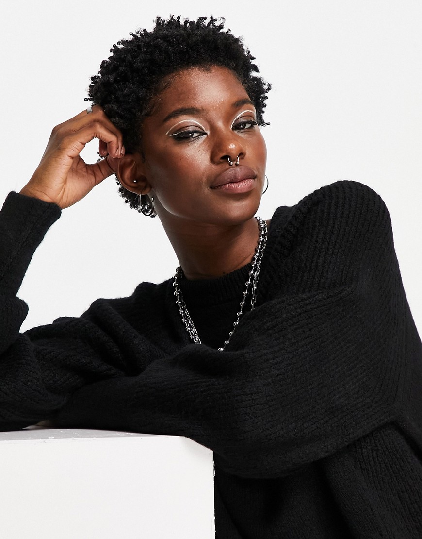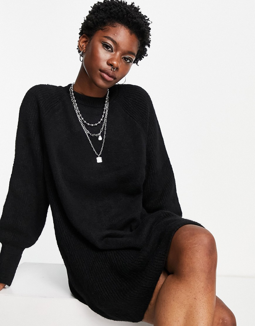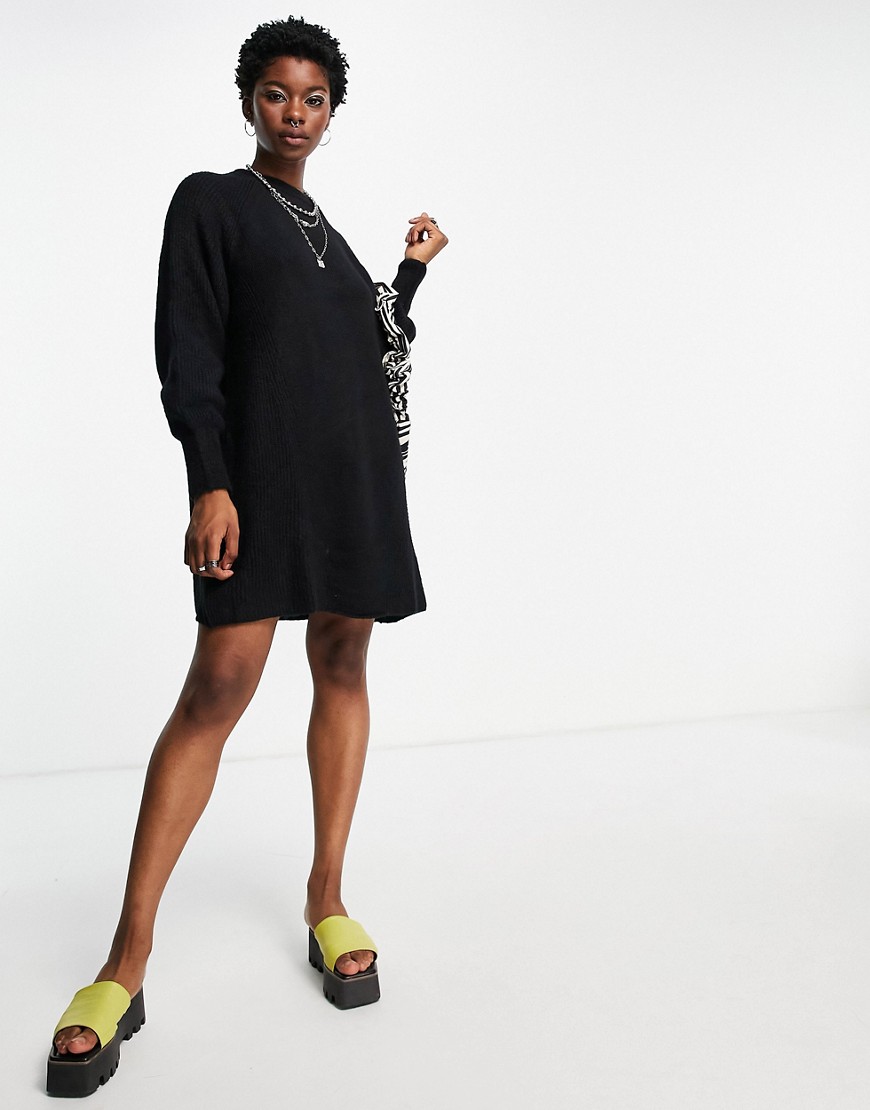 Topshop czarna dzianinowa prążkowana sukienka mini M