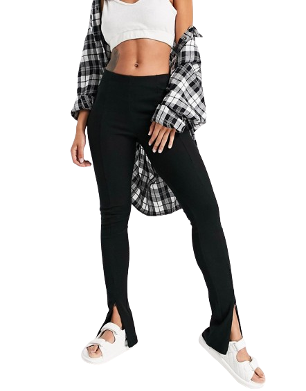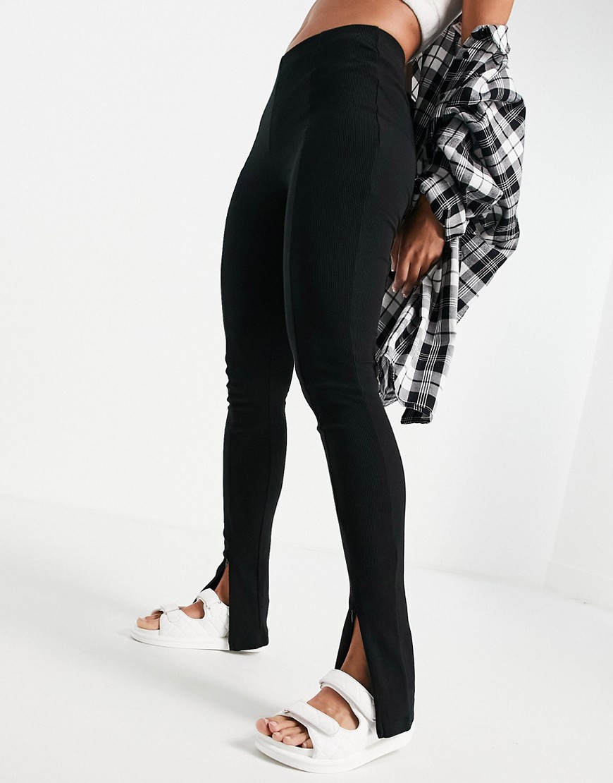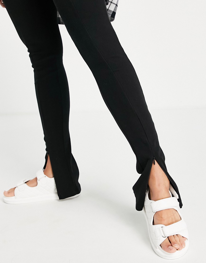 Topshop czarne prążkowane legginsy dzwony z zamkami na dole nogawek 38