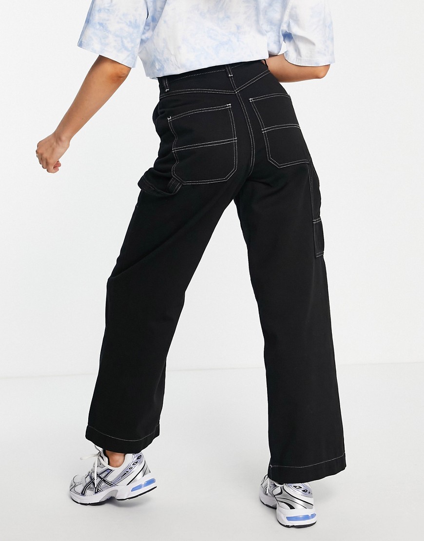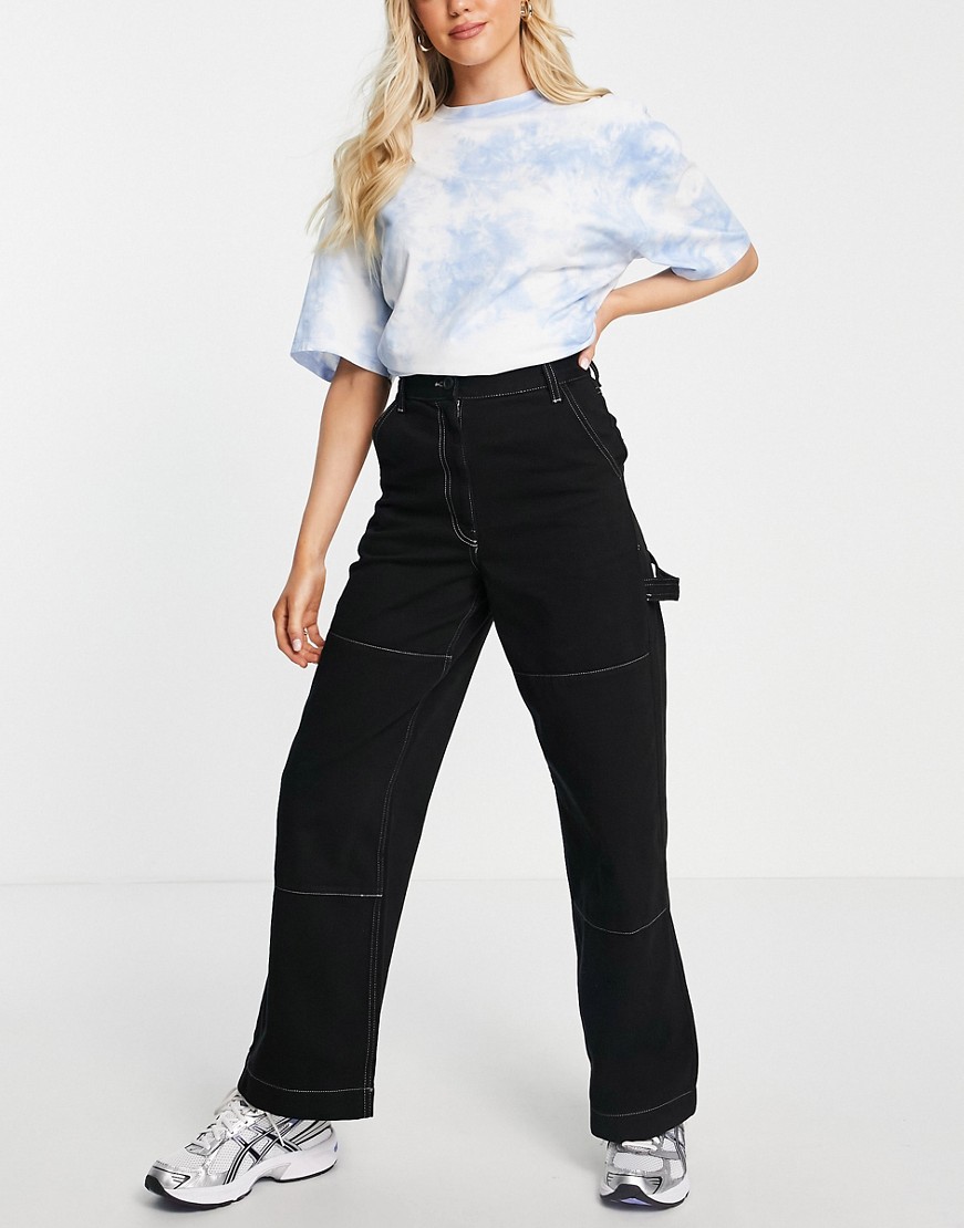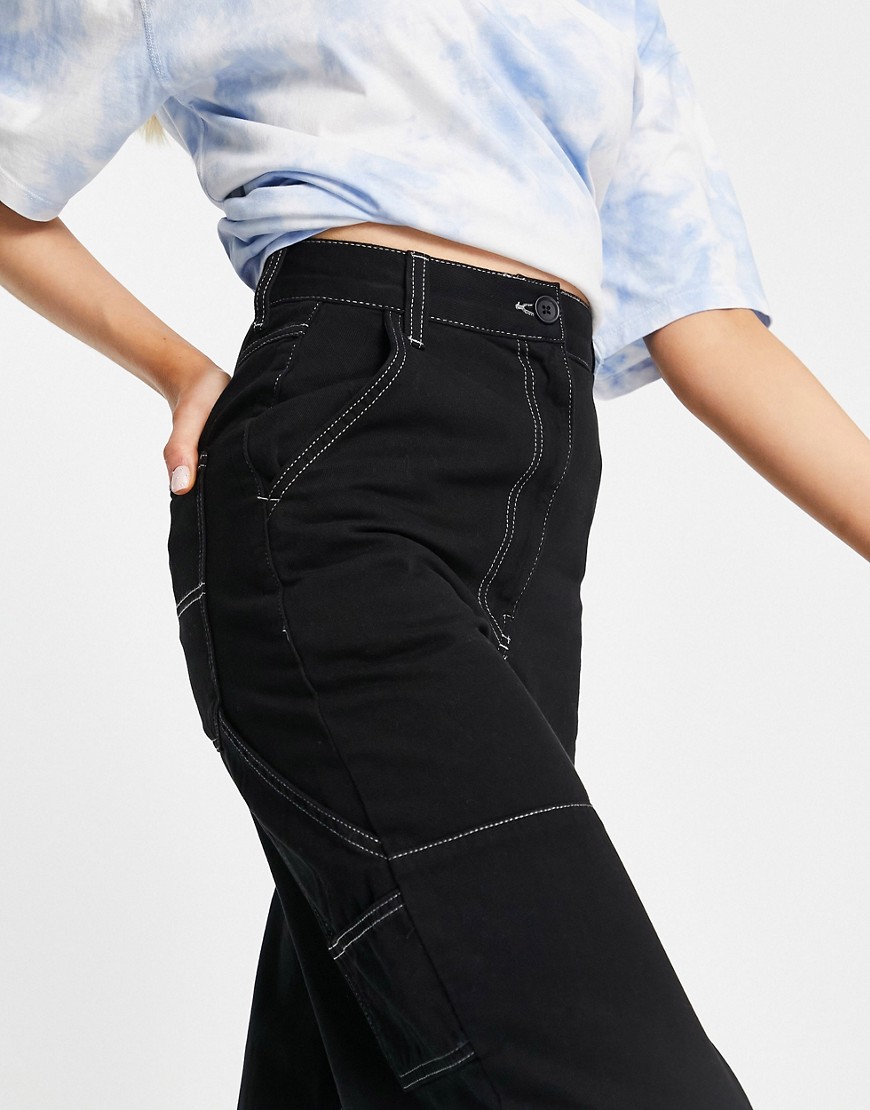 Topshop czarne spodnie bojówki w stylu work z prostymi nogawkami 42