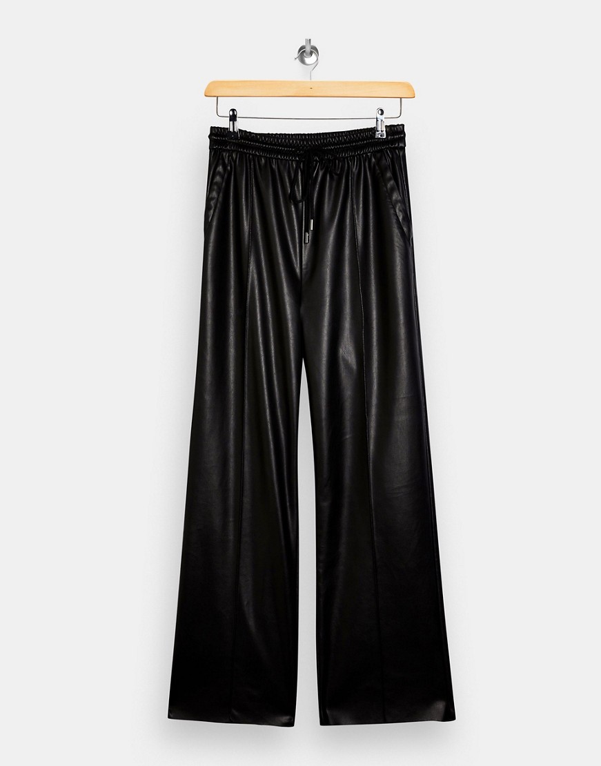 Topshop czarne spodnie z imitacji skóry z prostymi nogawkami 38