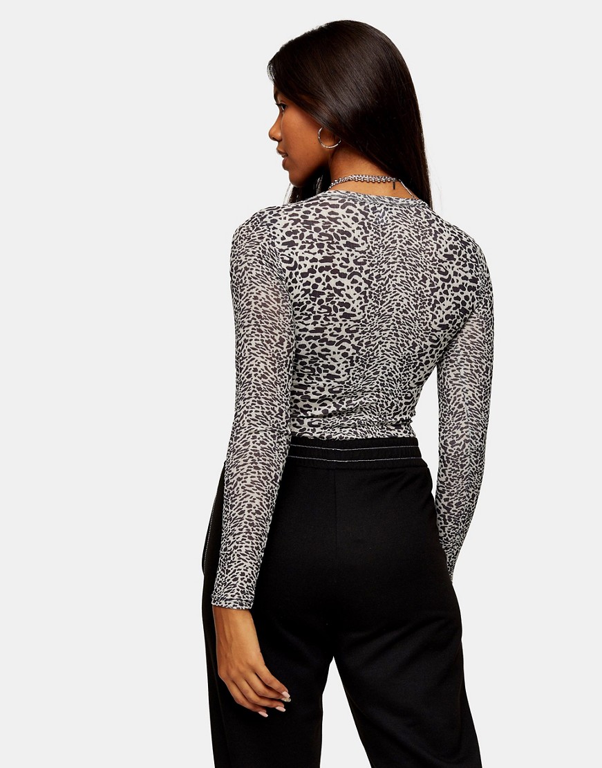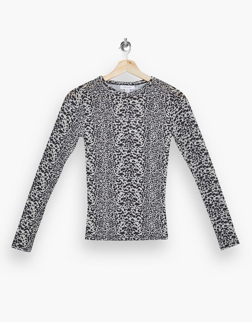 Topshop czarno biała damska bluzka siateczkowa zwierzęcy wzór 38