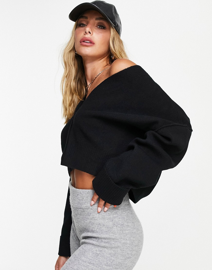 Topshop czarny dzianinowy krótki kardigan pudełkowy krój S